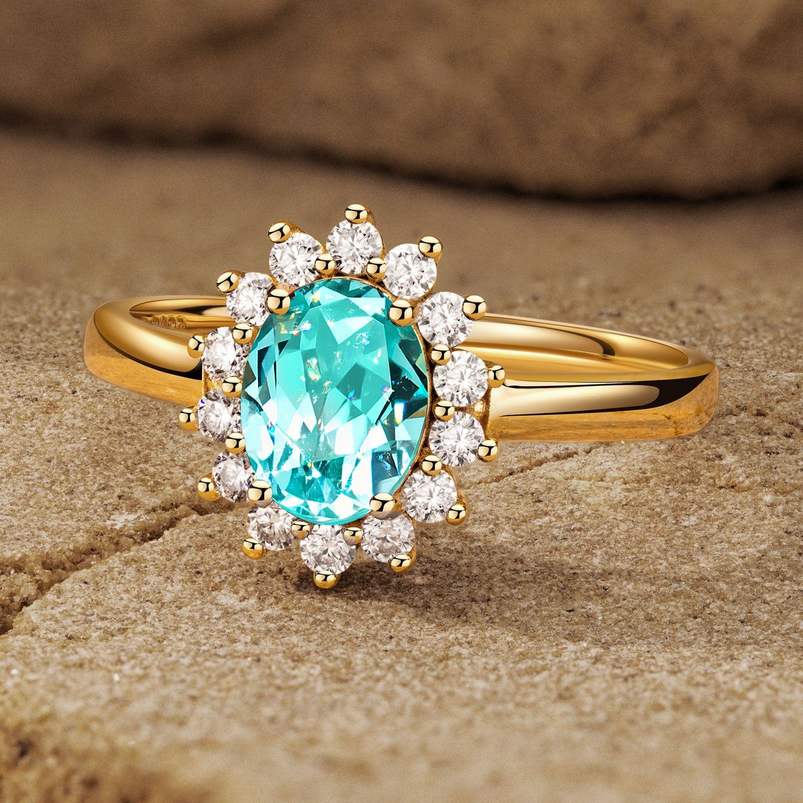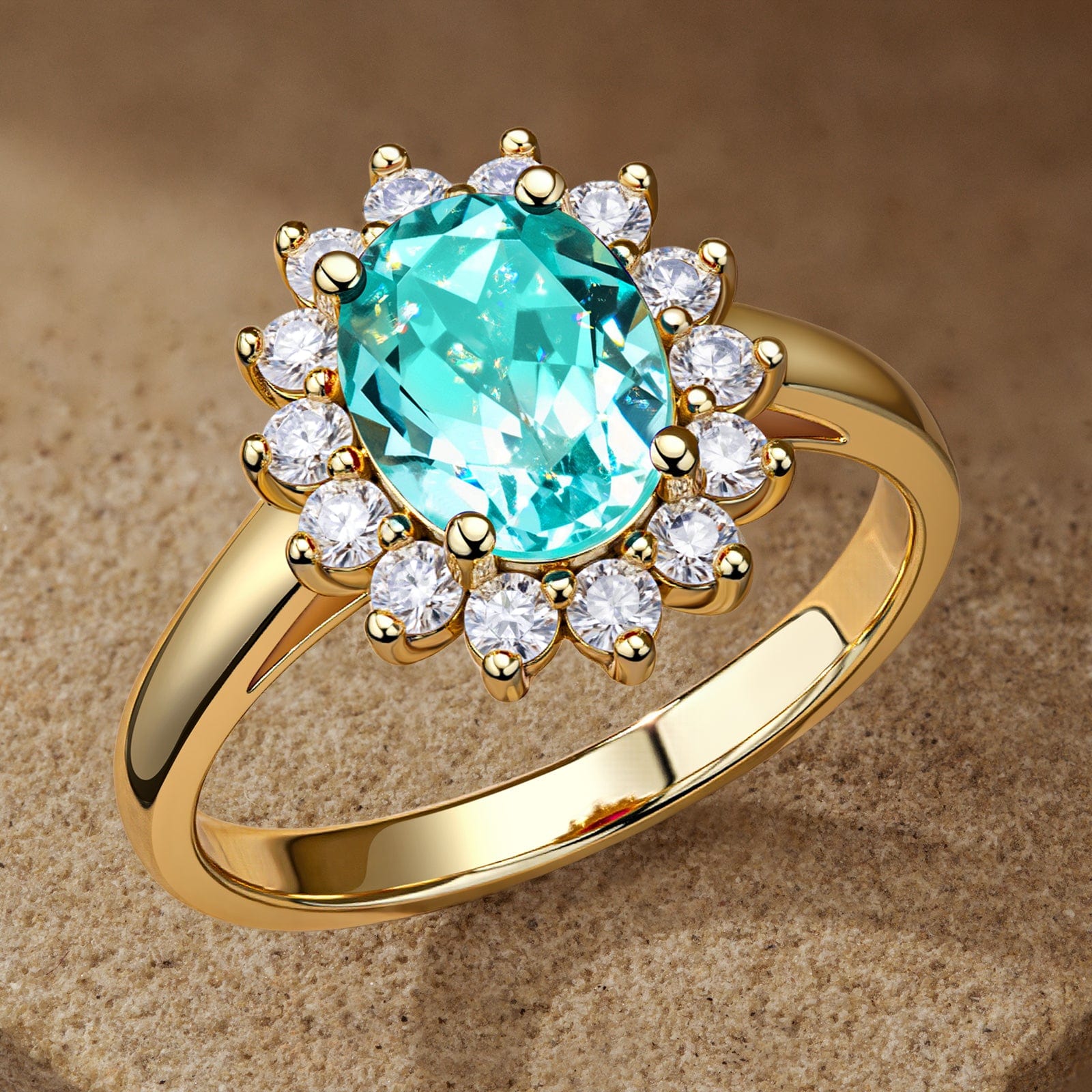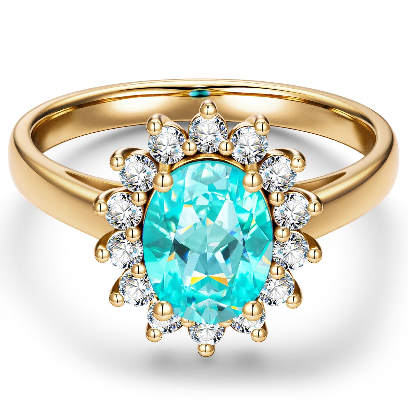 Oval Brilliant Cut Electric Lagoon Hue Lab-Certified Paraiba Tourmaline - Halo Classic Engagement Ring 14K Yellow Gold Plated (Includes GRC Certification from Gemstone Research Center)