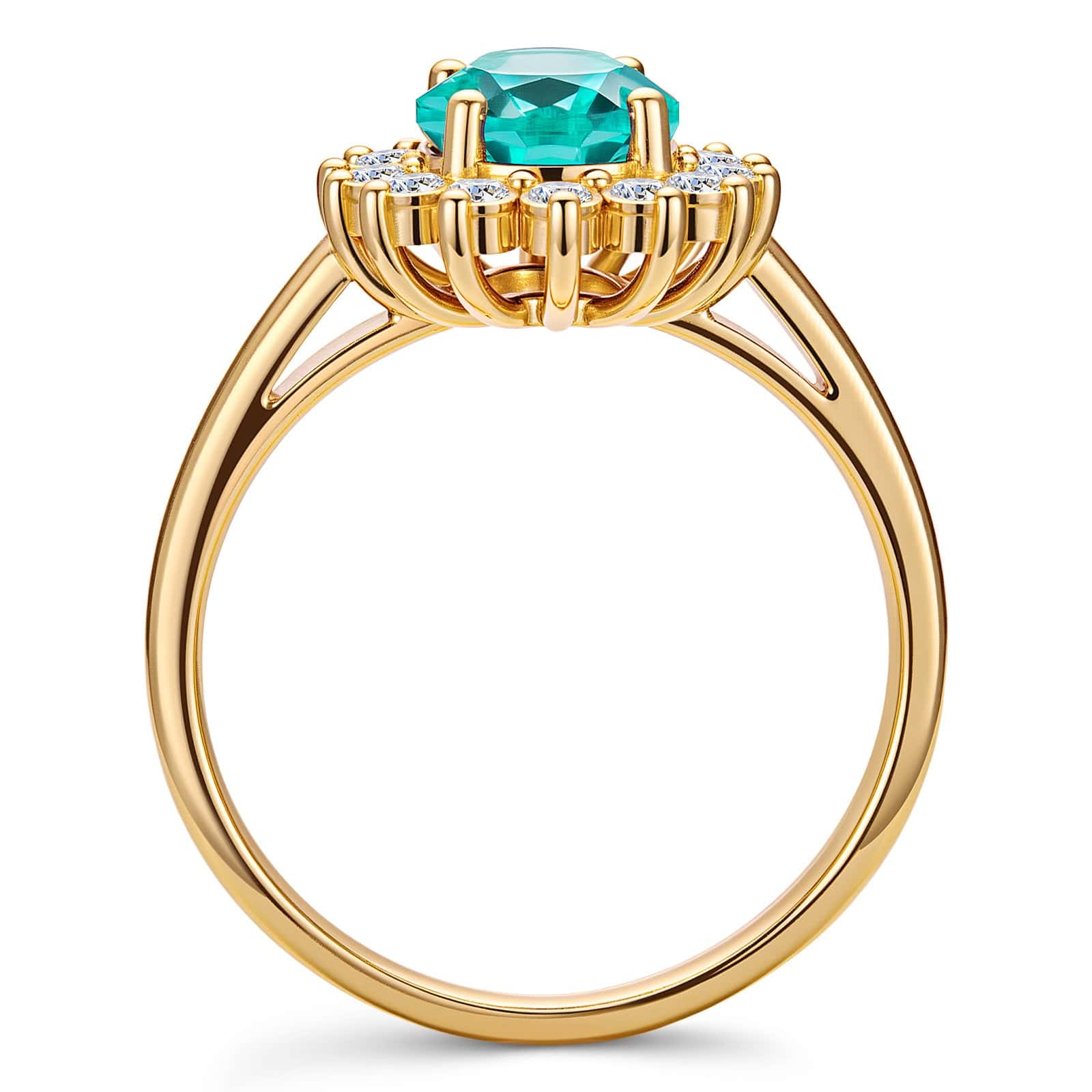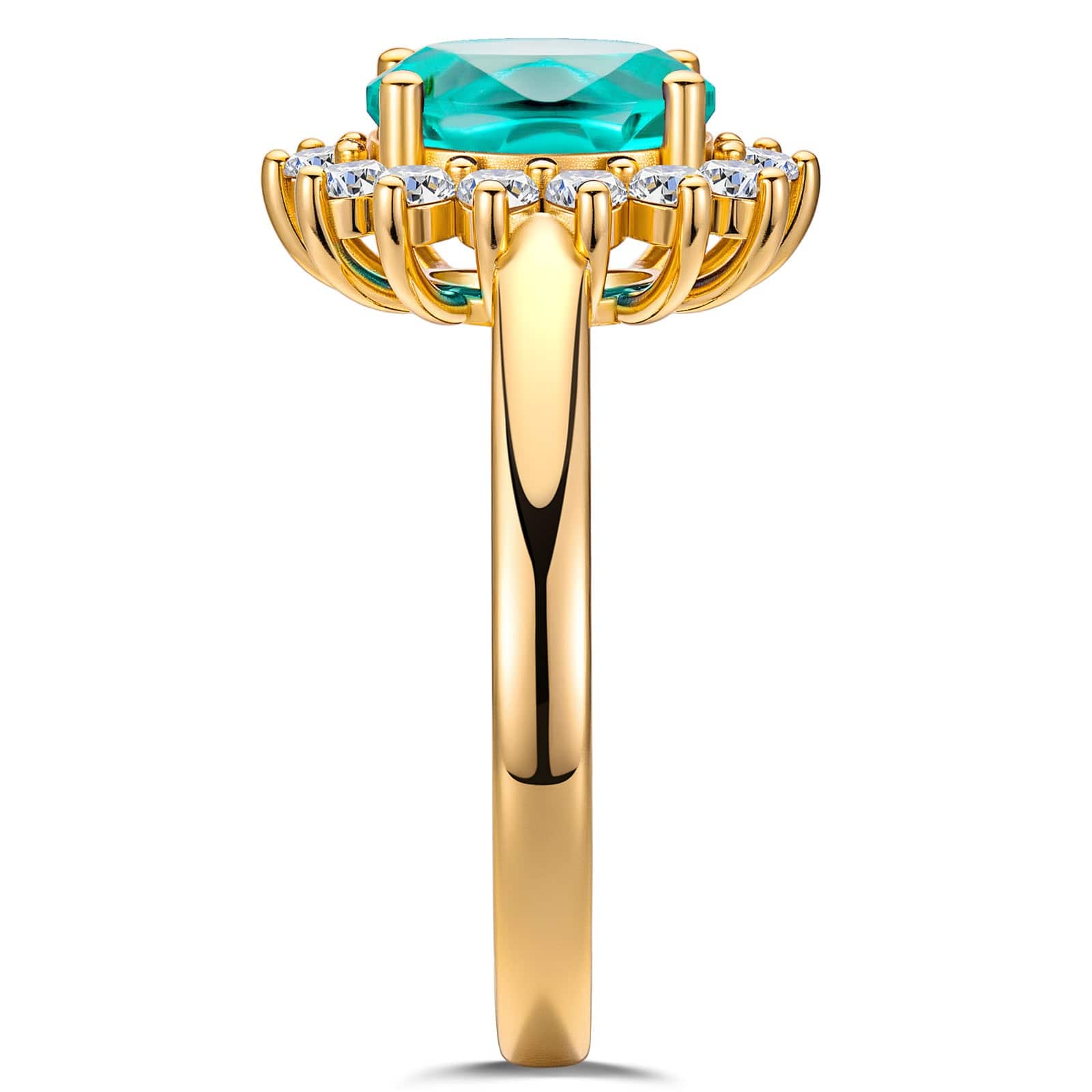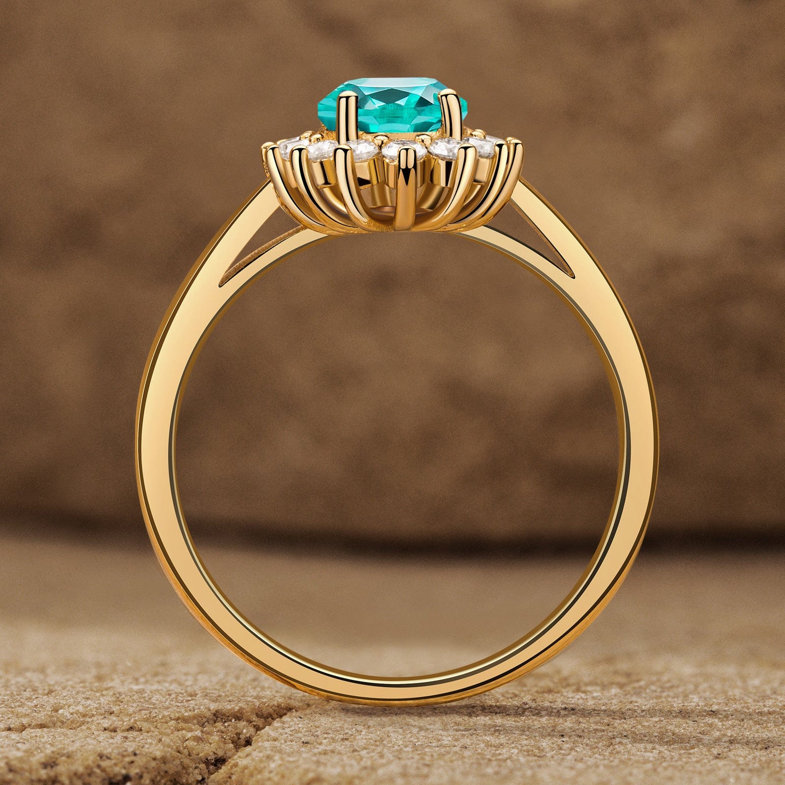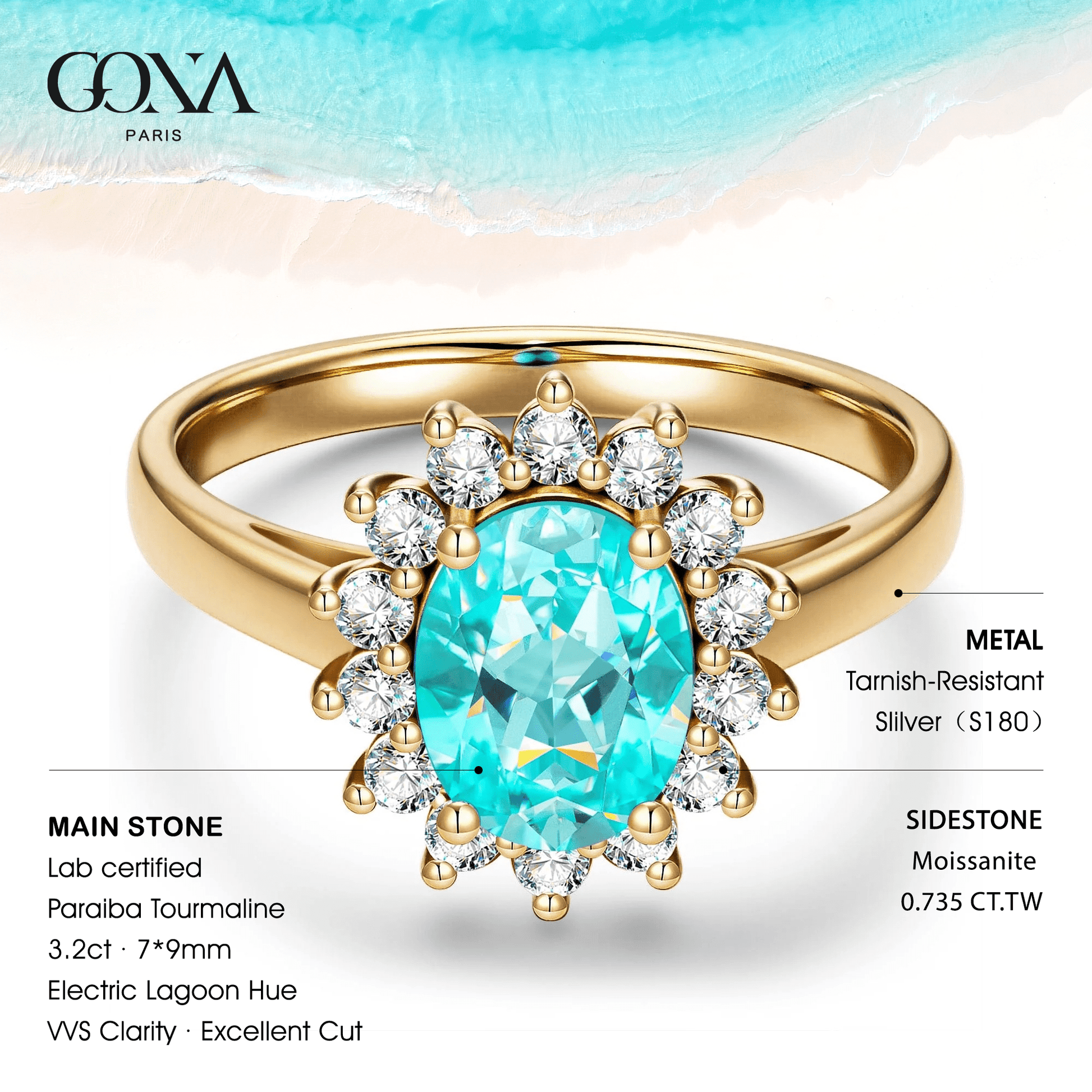 Oval Brilliant Cut Electric Lagoon Hue Lab-Certified Paraiba Tourmaline - Halo Classic Engagement Ring 14K Yellow Gold Plated (Includes GRC Certification from Gemstone Research Center)