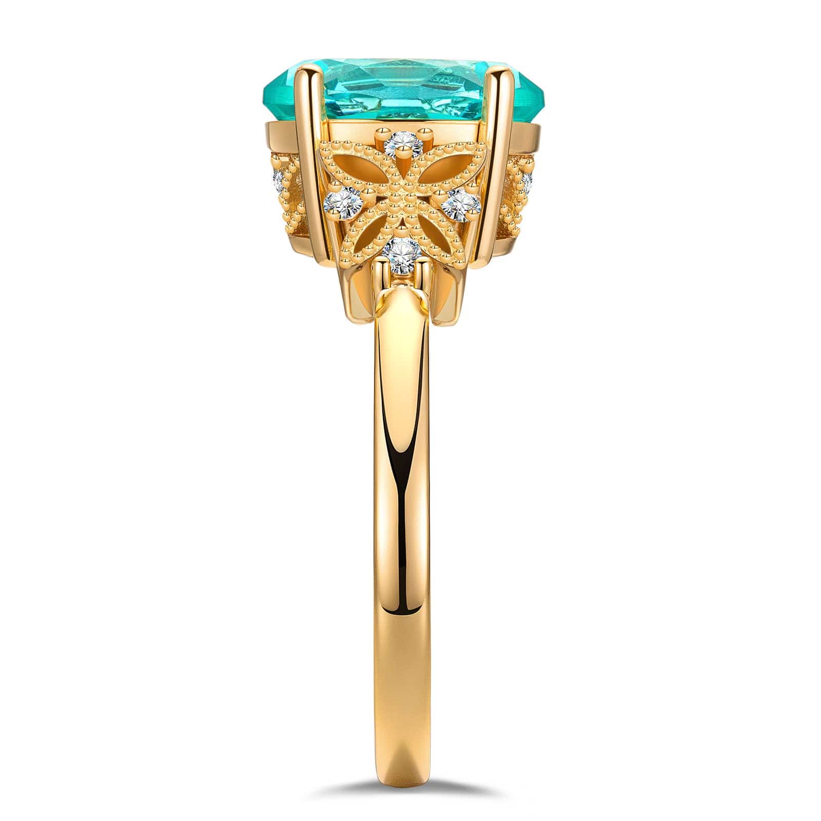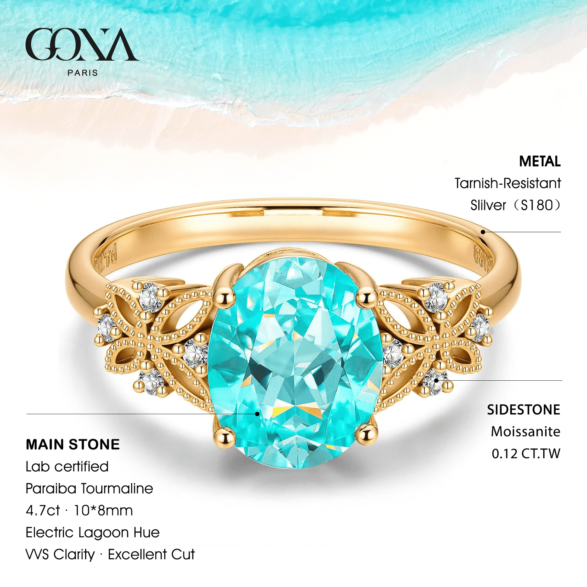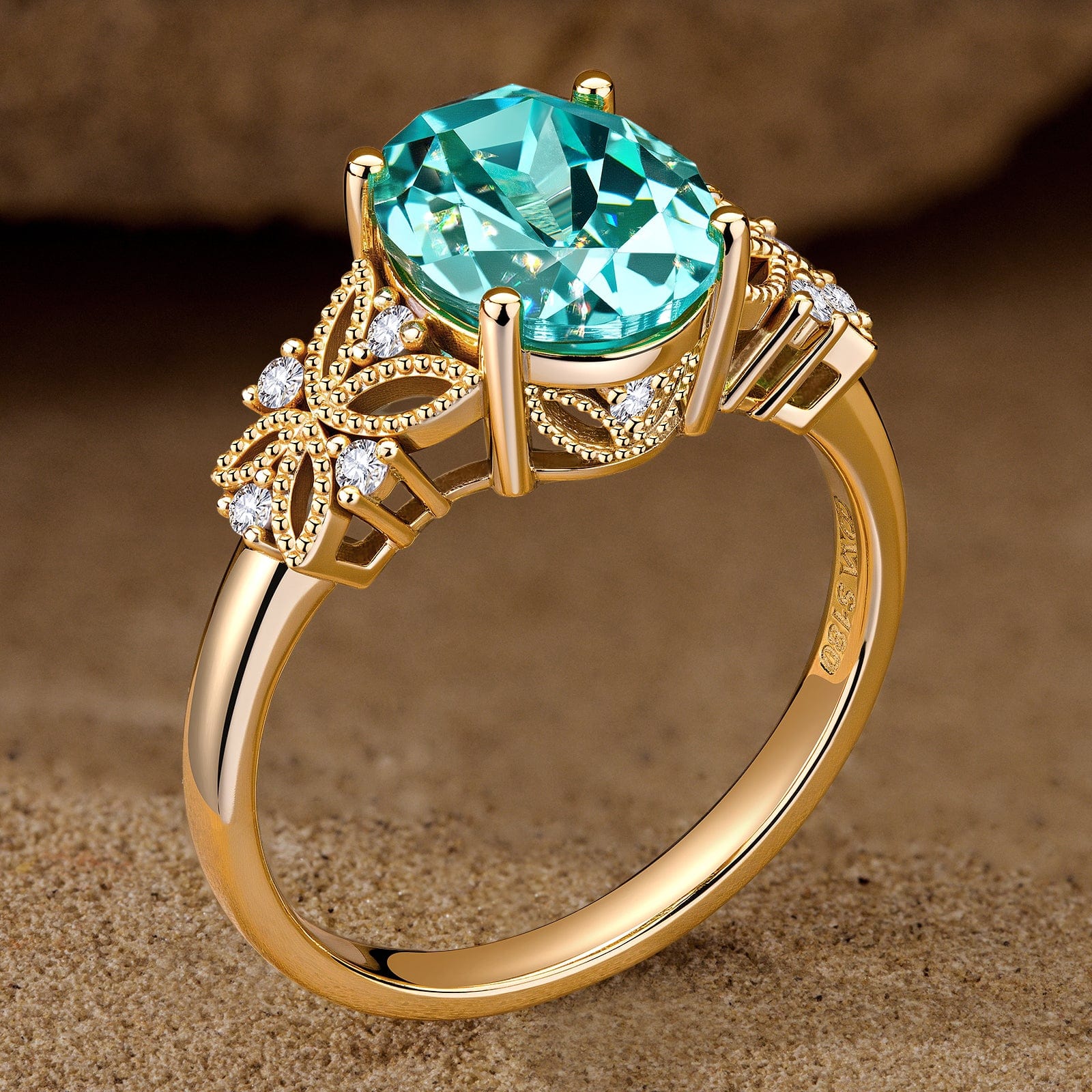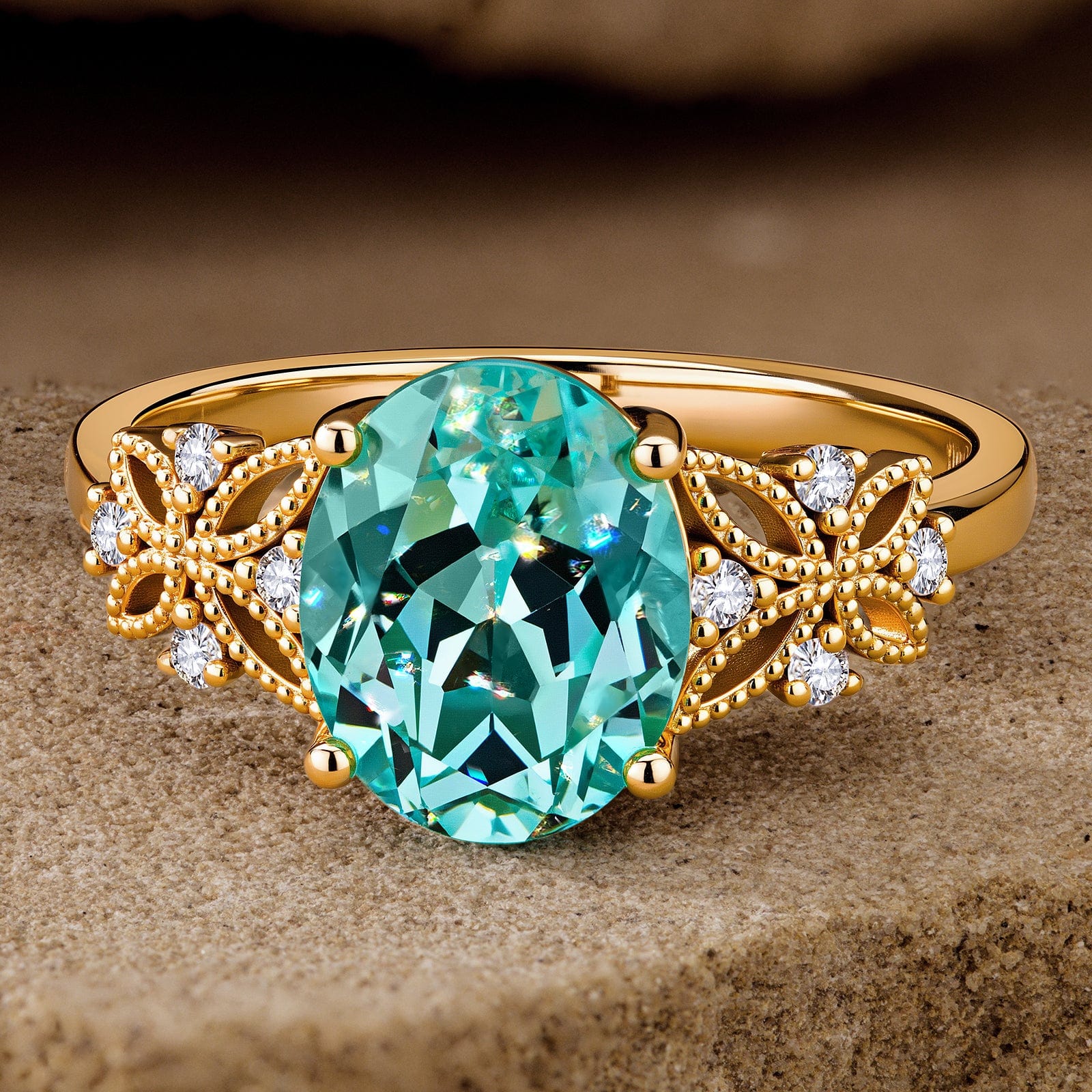 Oval Brilliant Cut Electric Lagoon Hue Lab-Certified Paraiba Tourmaline - Pave Classic Engagement Ring 14K Yellow Gold Plated (Includes GRC Certification from Gemstone Research Center)