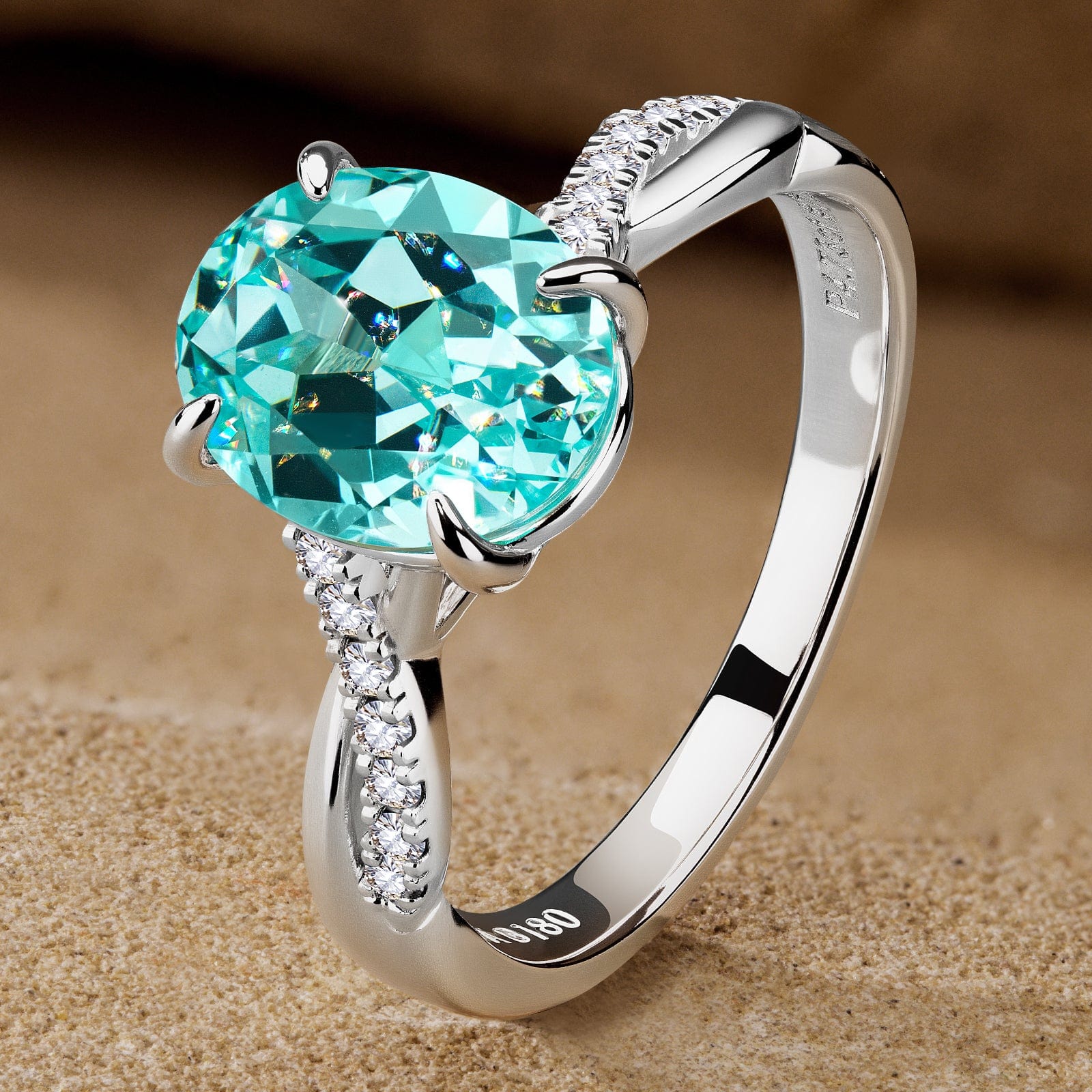 Oval Brilliant Cut Electric Lagoon Hue Lab-Certified Paraiba Tourmaline - Pave Classic Engagement Ring White Gold Plated (Includes GRC Certification from Gemstone Research Center)