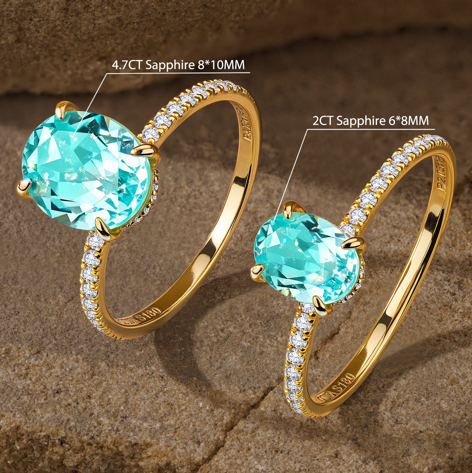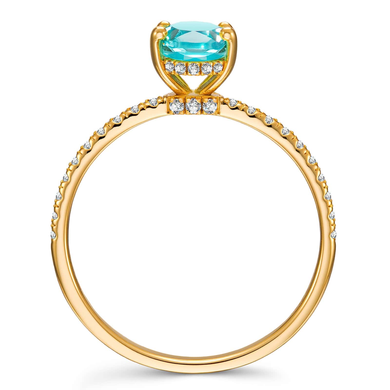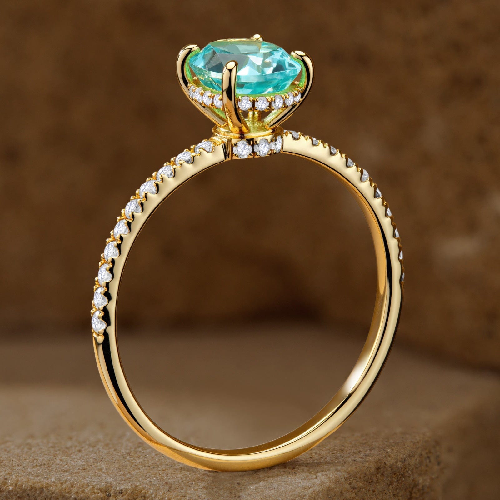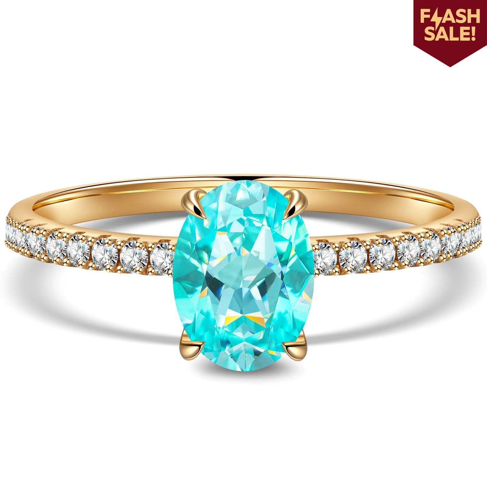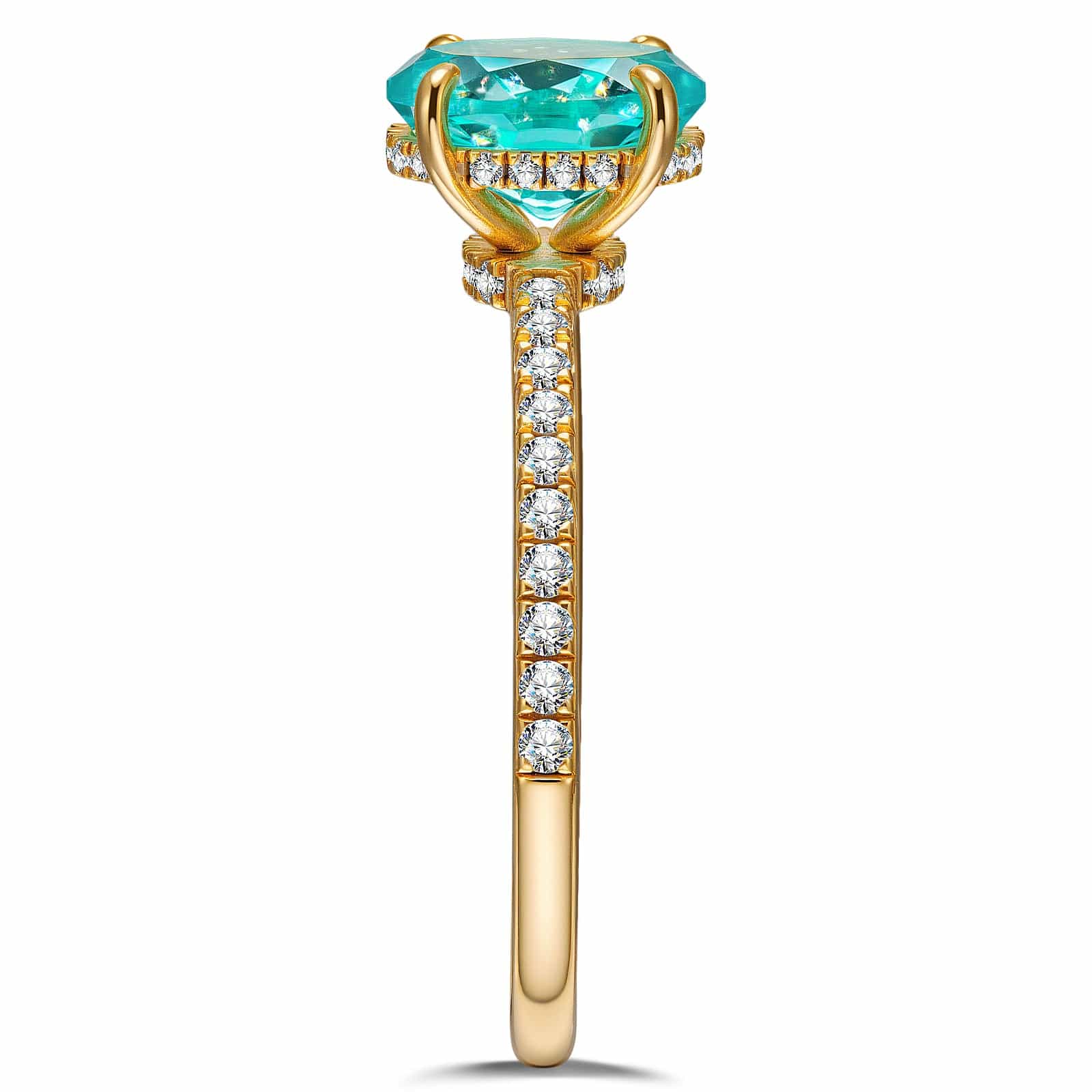 Oval Brilliant Cut Electric Lagoon Hue Lab-Certified Paraiba Tourmaline - Pave Classic Engagement Ring 14K Yellow Gold Plated (Includes GRC Certification from Gemstone Research Center)