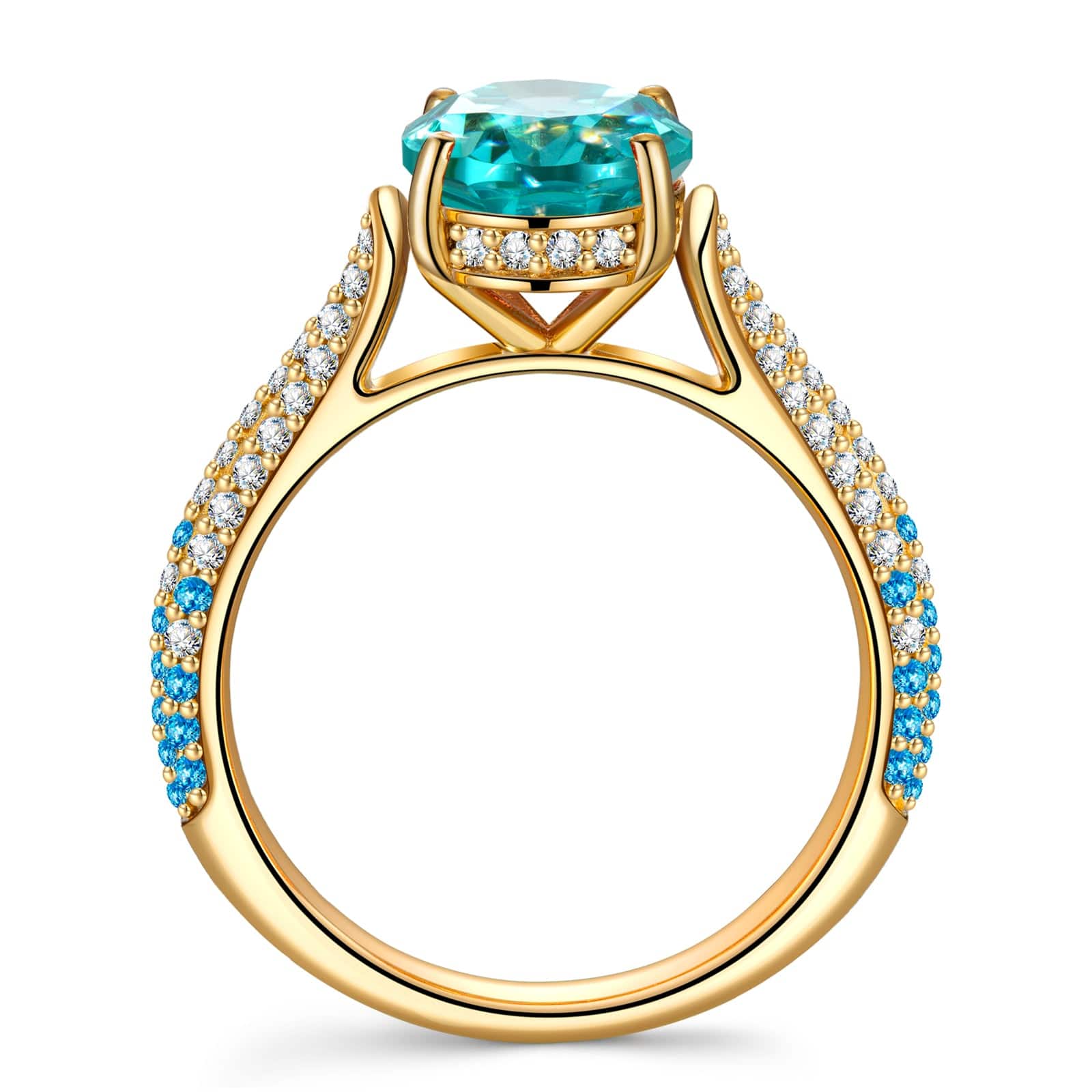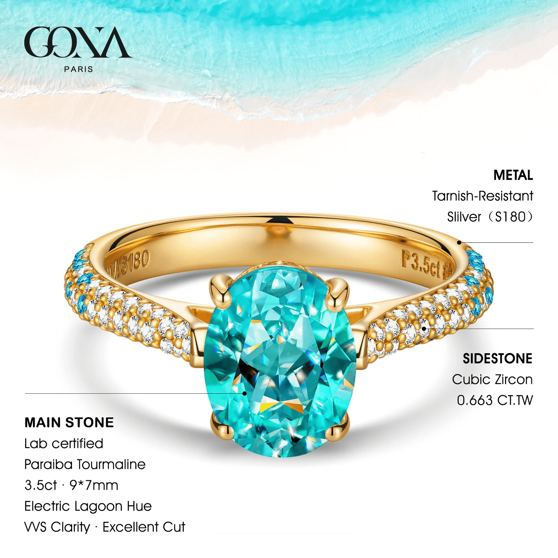 Oval Brilliant Cut Electric Lagoon Hue Lab-Certified Paraiba Tourmaline - Halo Classic Engagement Ring 14K Yellow Gold Plated (Includes GRC Certification from Gemstone Research Center)