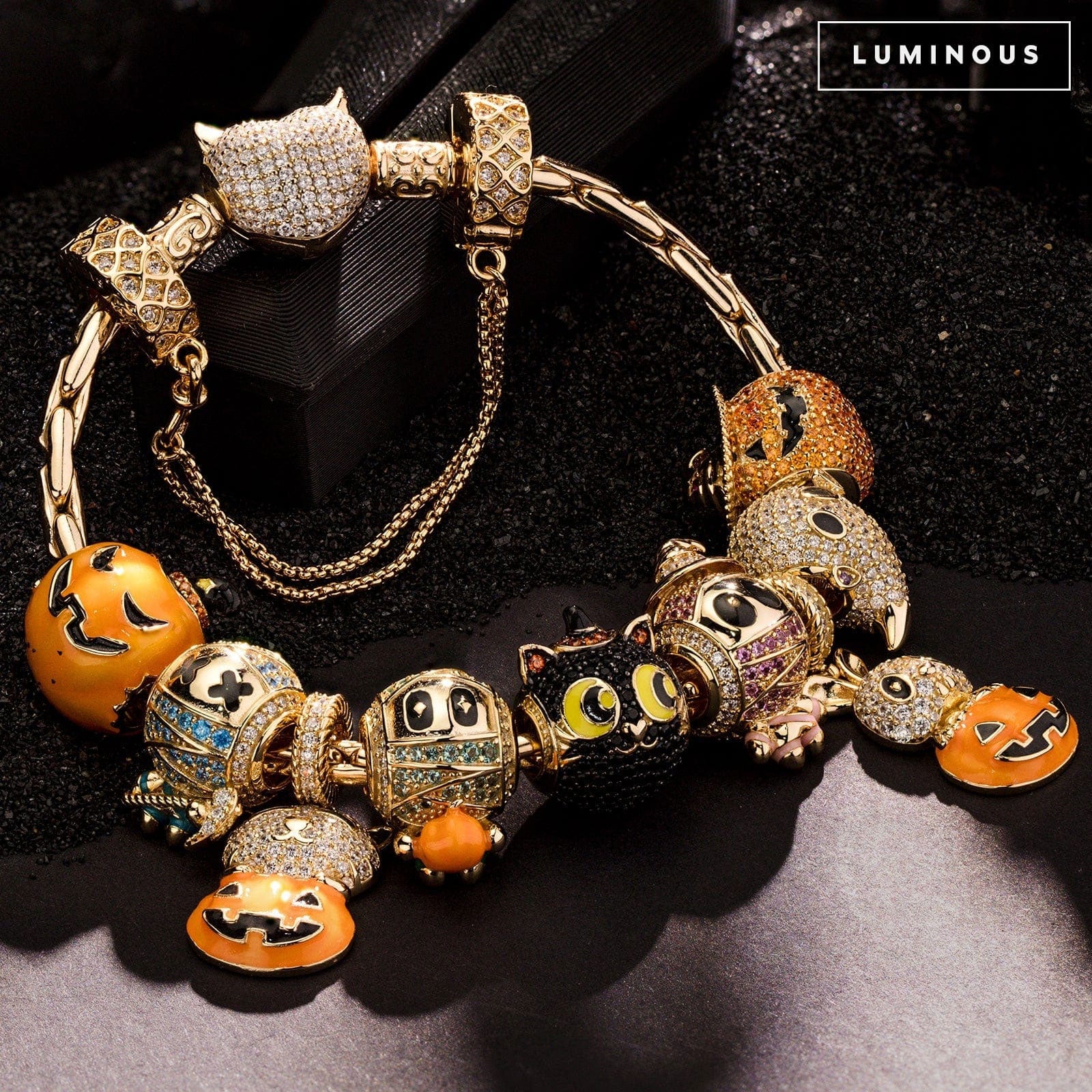 Sterling Silver Whimsical Darkness Charms Bracelet Set With Enamel In 14K Gold Plated (Includes bracelet and all charms shown)