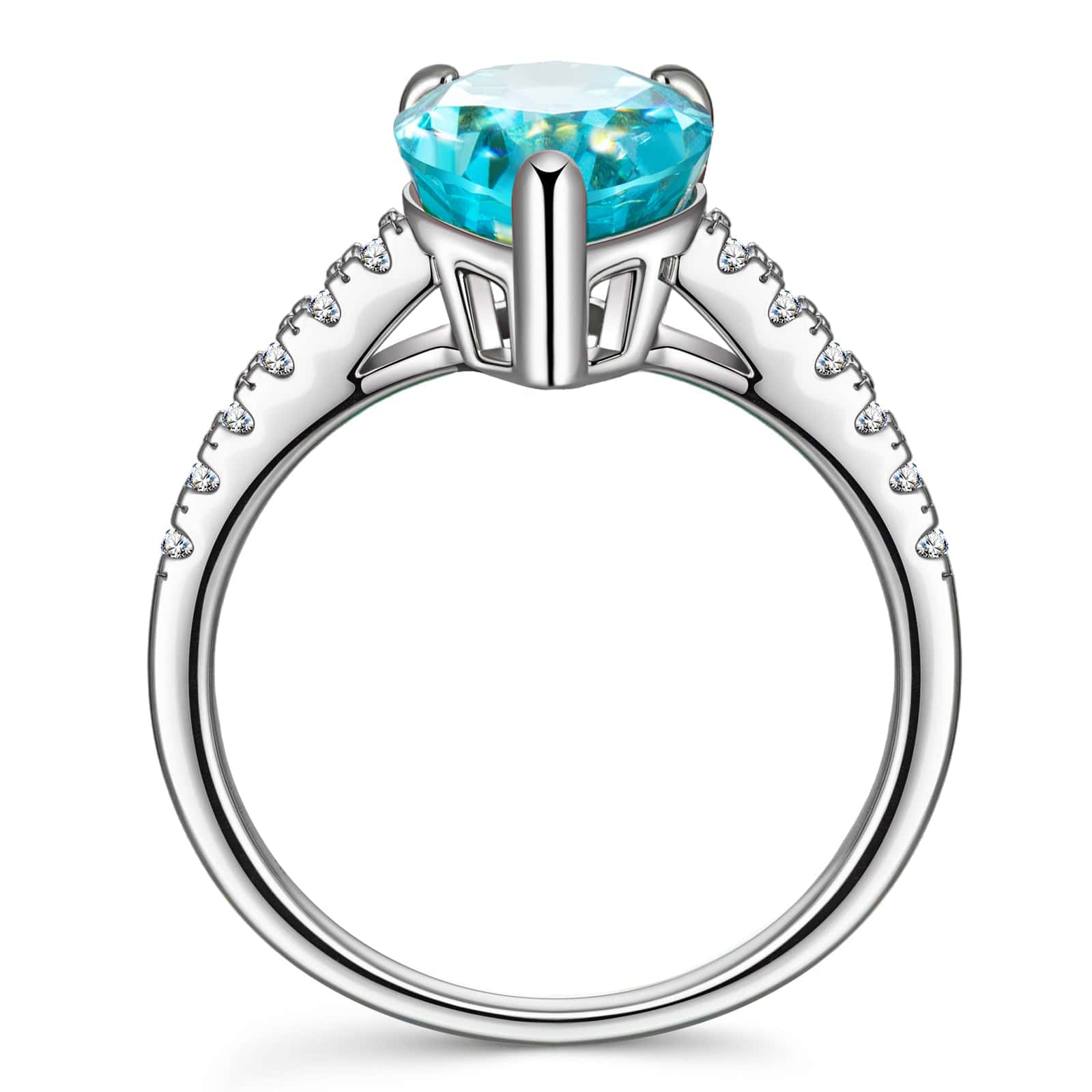 8*12mm Pear Modified Brilliant Cut Fancy Vivid Blue Ice-Frosted Sparkle Lab Zircon - Pave Classic Engagement Ring White Gold Plated