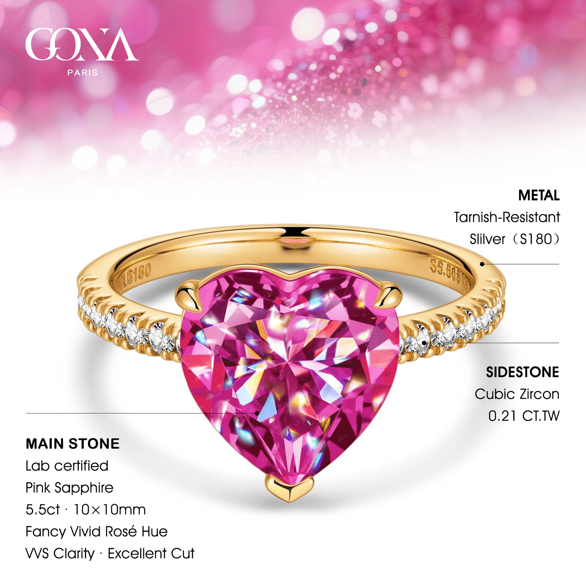 Heart Brilliant Cut Fancy Vivid Rose Hue Lab-Certified Pink Sapphire - Halo Classic Engagement Ring 14K Yellow Gold Plated (Includes GRC Certification from Gemstone Research Center)
