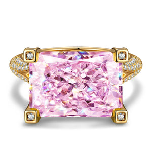 14*10mm Radiant Modified Brilliant Cut Fancy Vivid Pink Ice-Frosted Sparkle Lab Zircon - Pave Classic Engagement Ring 14K Yellow Gold Plated
