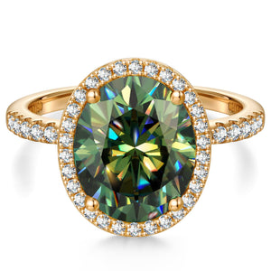 Oval Brilliant Cut Original Blue-Green Hue Lab-Certified Moissanite - Halo Classic Engagement Ring 14K Yellow Gold Plated (Includes GRA Certification from Gemological Research Association)