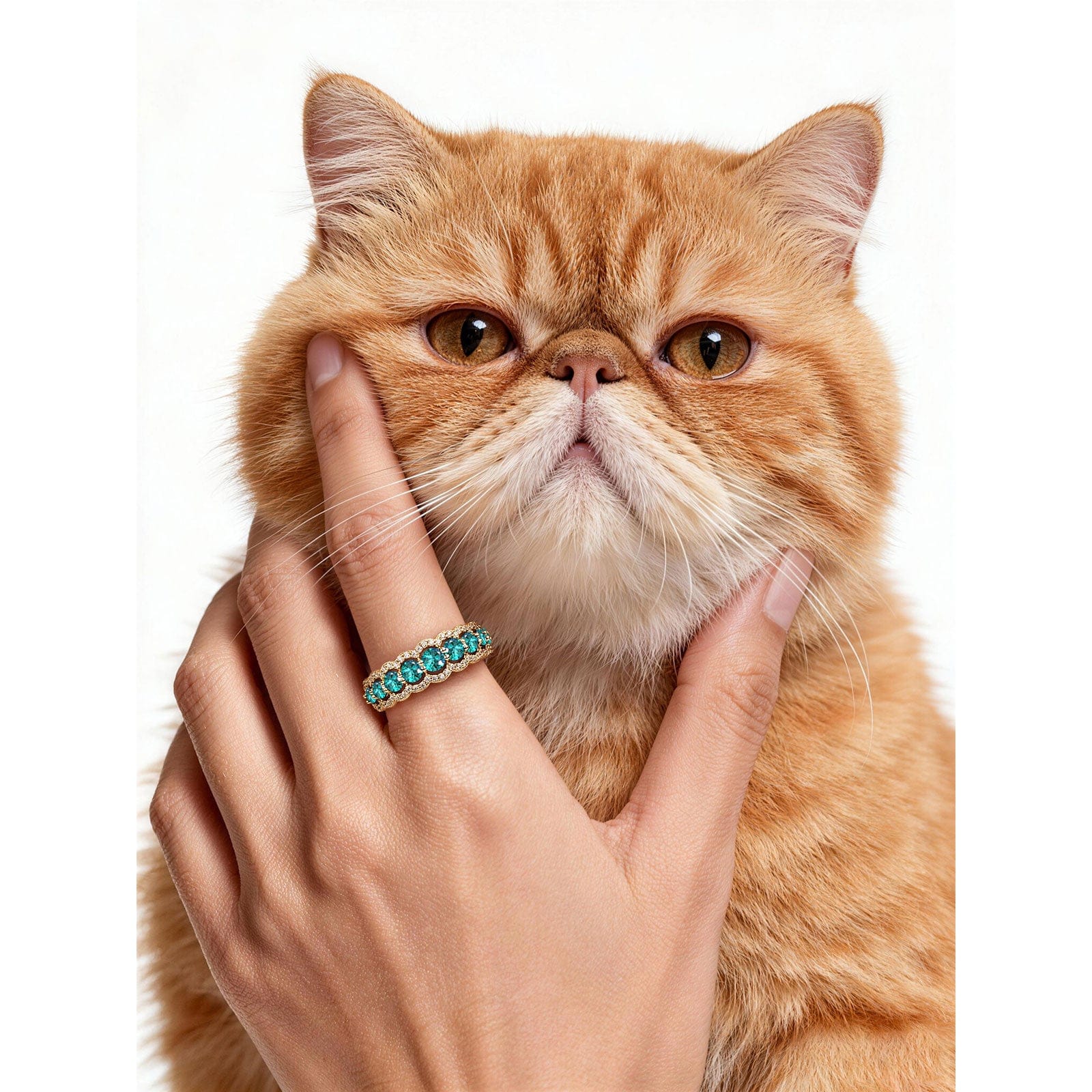 Round Brilliant Cut Electric Lagoon Hue Lab-Certified Paraiba Tourmaline - Half Eternity Ring 14K Yellow Gold Plated (Includes GRC Certification from Gemstone Research Center)