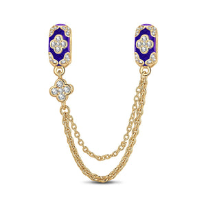 Four Leaf Clover Tarnish-resistant Silver Safety Chain With Enamel In 14K Gold Plated