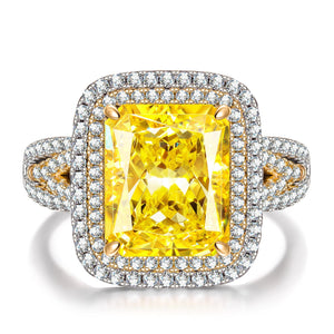Radiant Modified Brilliant Cut Fancy Vivid Yellow Ice-Frosted Sparkle Lab Zircon - Halo Classic Engagement Ring White Gold Plated