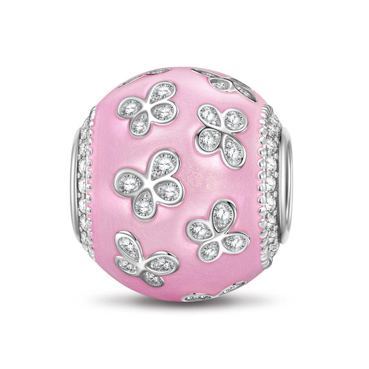 Pink Butterfly Paradise Tarnish-resistant Silver Charms With Enamel In Silver Plated