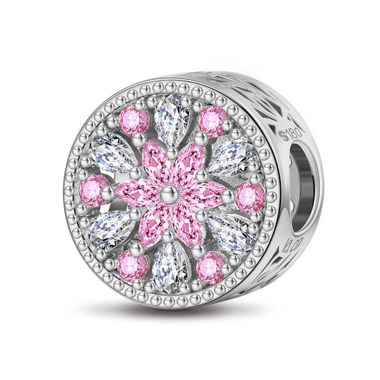 Sterling Silver Pink Daisy Flower Dangle Charms In White Gold Plated