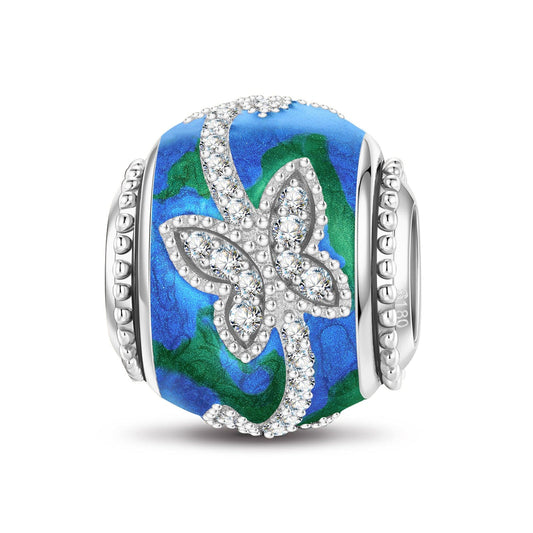Butterflies in Tandem Tarnish-resistant Silver Lucky Charms With Enamel In White Gold Plated