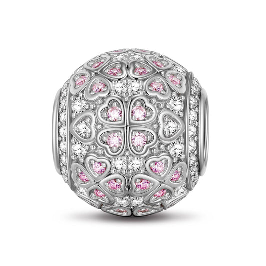 Sterling Silver Pink Lucky Clover Charms In White Gold Plated