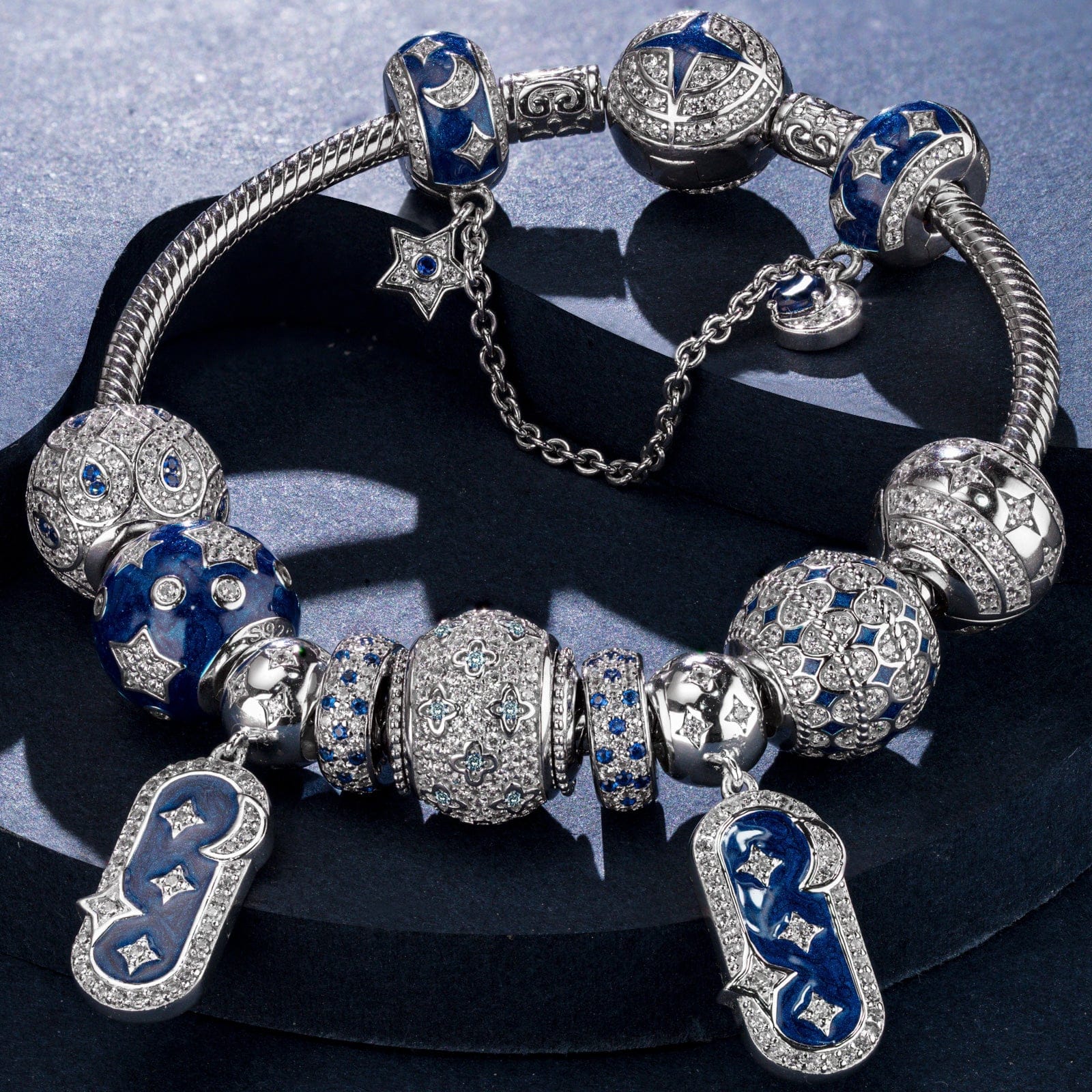 Design: Embrace the beauty of the cosmos and adorn yourself with our captivating Starry Collection. From shimmering stars to mysterious moons, from swirling galaxies to futuristic spacecraft, our collection is a symphony of elegance and wonder. With sleek, modern designs that seamlessly transition from day to night, our charms are not just accessories but gateways to a universe of imagination and discovery.