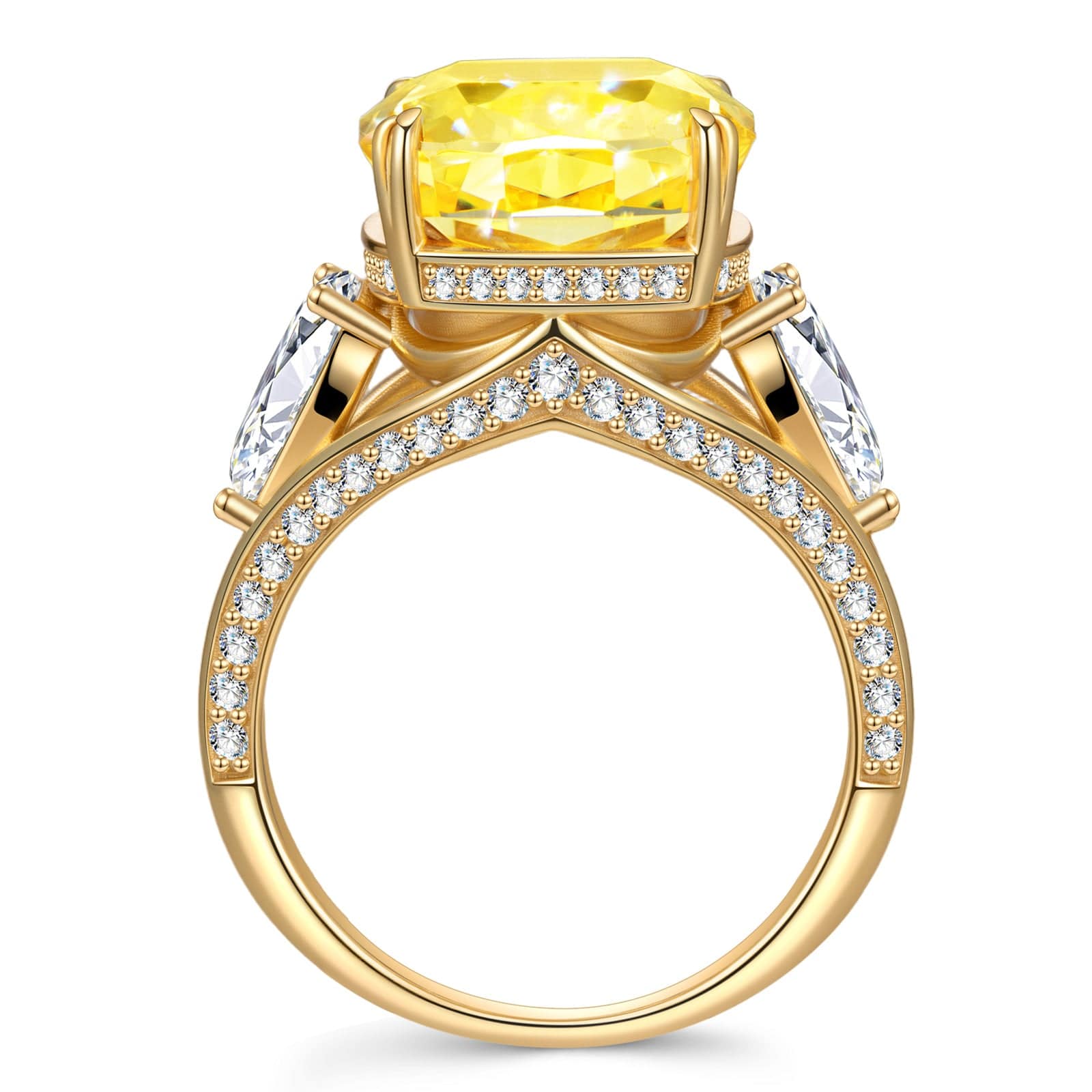 16*12mm Cushion Modified Brilliant Cut Fancy Vivid Yellow Ice-Frosted Sparkle Lab Zircon - Pave Classic Engagement Ring 14K Yellow Gold Plated