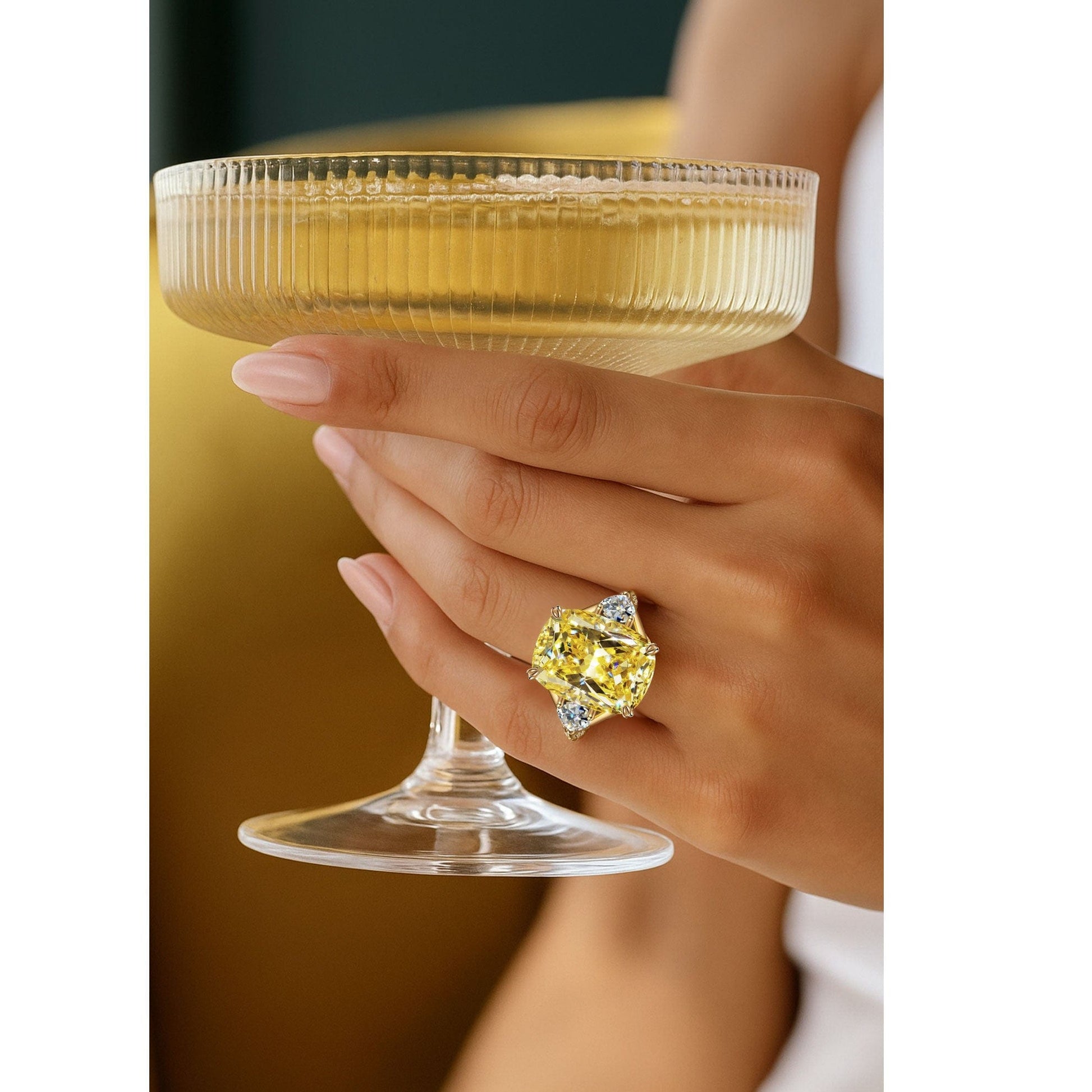 Main Stone : Fancy Vivid Yellow Ice-Frosted Sparkle Lab Zircon