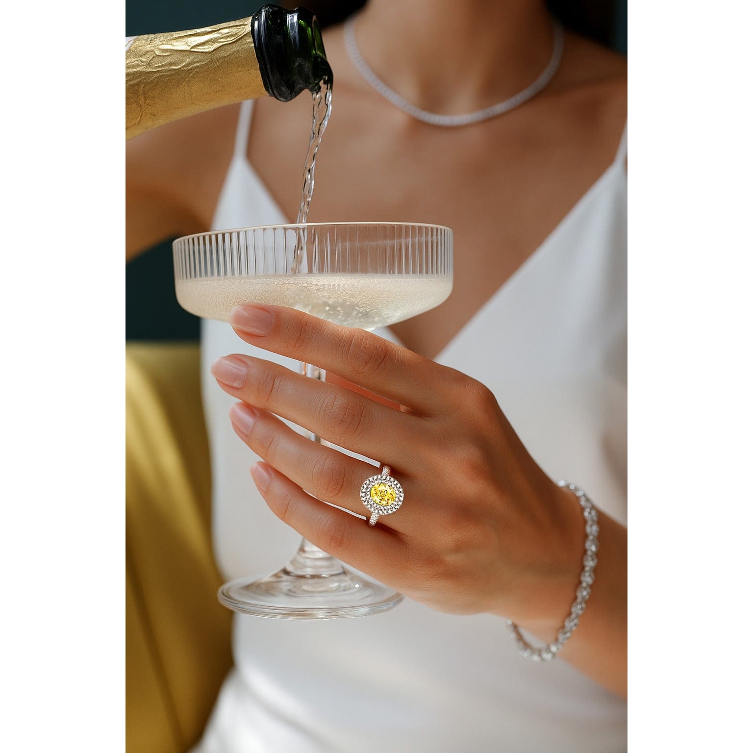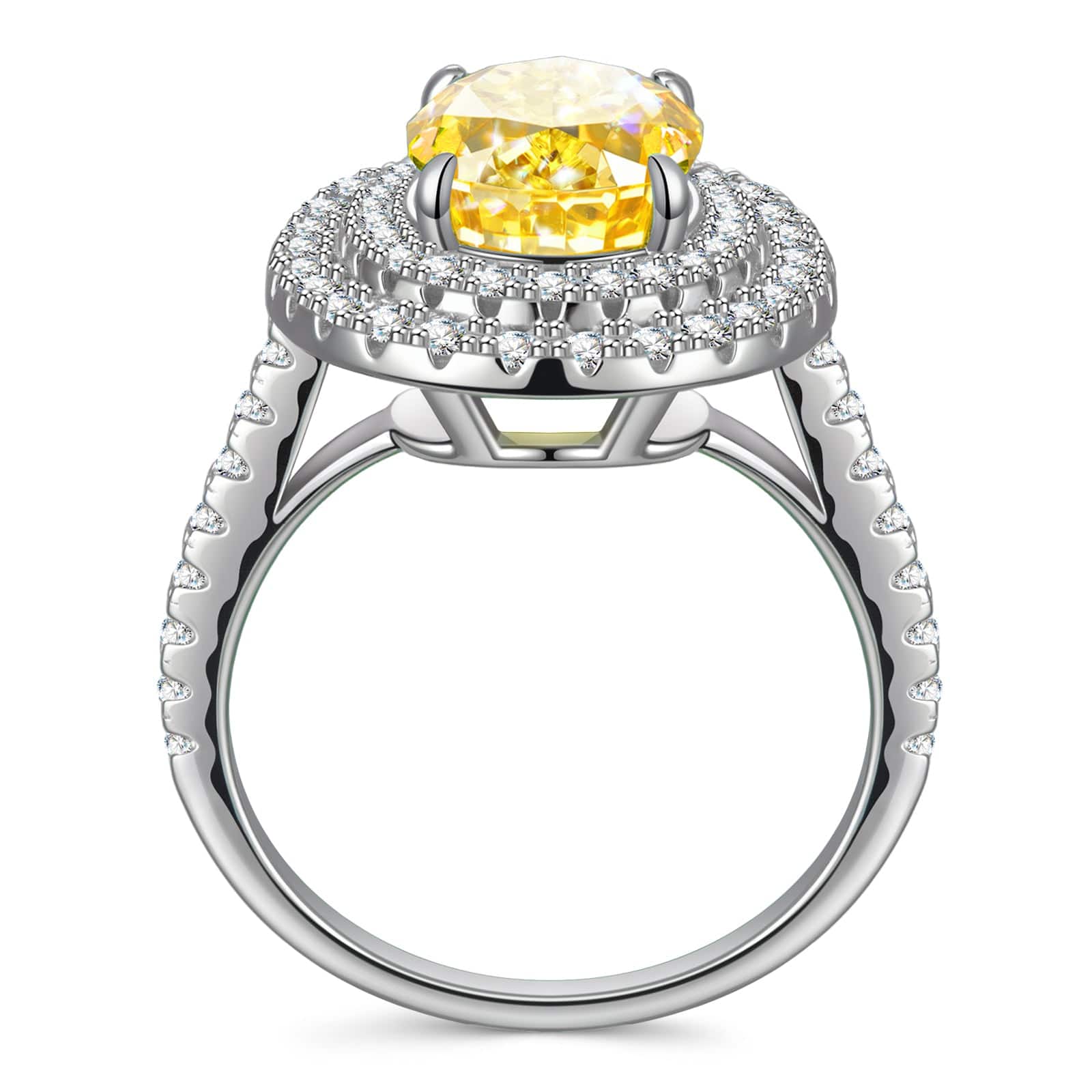 8*10mm Oval Modified Brilliant Cut Fancy Vivid Yellow Ice-Frosted Sparkle Lab Zircon - Halo Classic Engagement Ring White Gold Plated