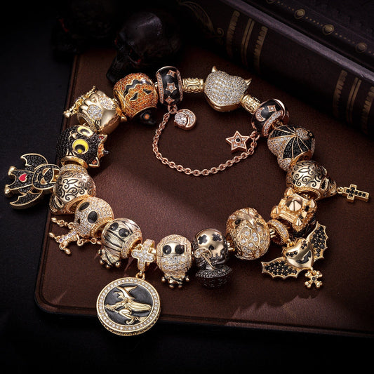 Sterling Silver The Lost Ghostdom Charms Bracelet Set With Enamel In 14K Gold Plated (Includes bracelet and all charms shown)