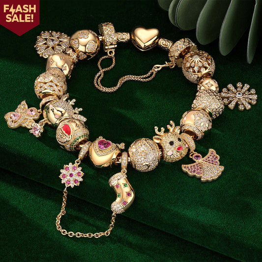 Limited Flash Sale - Sterling Silver Winter Wonderland Wishes Charms Bracelet Set With Enamel In 14K Gold Plated (Includes bracelet and all charms shown)