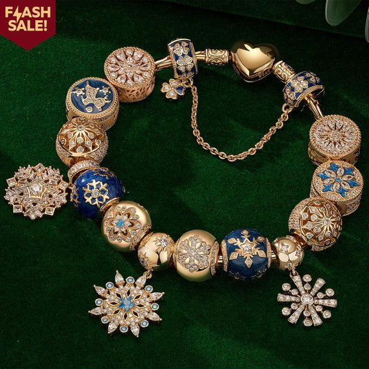 Sterling Silver Splendid Snowfall Charms Bracelet Set With Enamel In 14K Gold Plated (Includes bracelet and all charms shown)