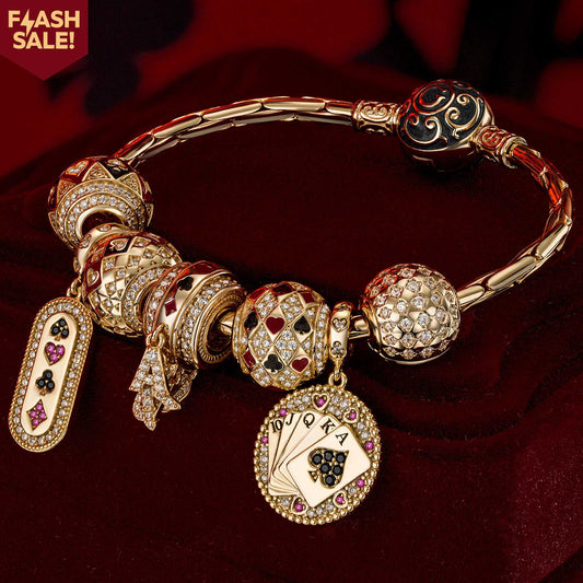 Sterling Silver Destiny's Card Charms Bracelet Set With Enamel In 14K Gold Plated (Includes bracelet and all charms shown)