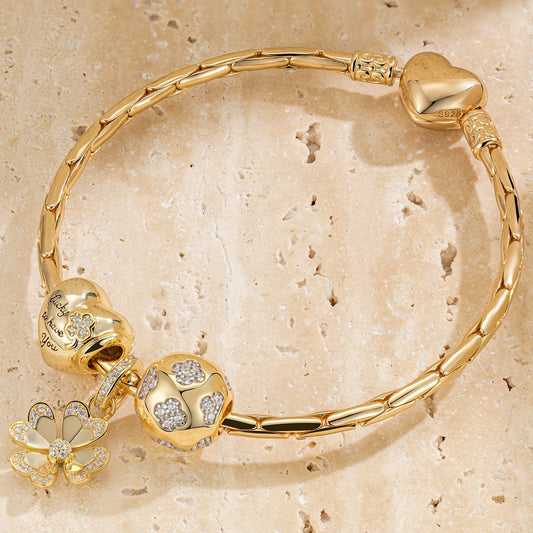 Sterling Silver Lucky Clover Charms Bracelet Set In 14K Gold Plated (Includes bracelet and all charms shown)