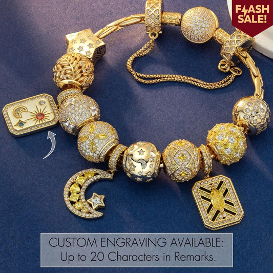 Sterling Silver Thriving Dreamscape Charms Bracelet Set In 14K Gold Plated (Includes bracelet and all charms shown)