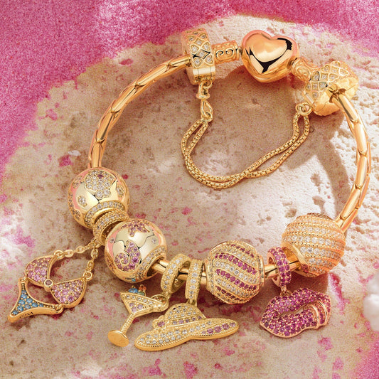 Sterling Silver Beachside Glamour Charms Bracelet Set In 14K Gold Plated (Includes bracelet and all charms shown)