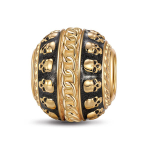 Skulls and Chain XL Size Tarnish-resistant Silver Charms With Enamel In 14K Gold Plated For Men