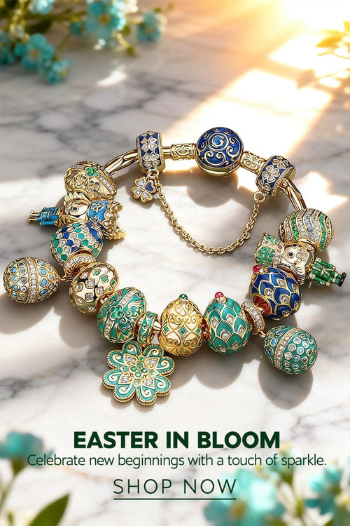 Sterling Silver Gilded Wonders Easter Eggs Charms Bracelet Set In 14K Gold Plated (Includes bracelet and all charms shown)