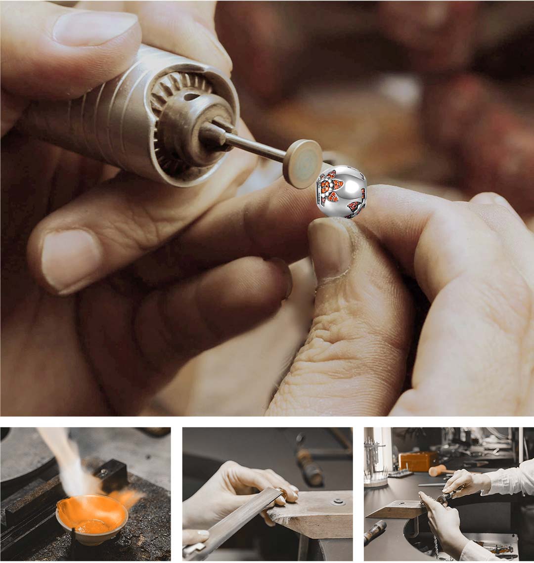 Crafts with micro-lacquered enamel: The micro-lacquered enamel craft is the core competence of GONA in the jewelry sector. At present, the micro-lacquered enamel process is mainly used on high-quality watches. GONA CHARMS are much smaller than watches and the process of micro-enameling is much more complex than most watches. All enamel work and inlay work is elaborately reworked under the microscope. GONA has invited the master of enamel art DOMINIQUE BARON as the main consultant for the micro-painting technology. Micro-painted enamel technology has its origins in Flanders, Europe, in the mid-15th century. Currently there are fewer than ten people in the world who have mastered this process. We are proud to work with Ms. BARON, who is one of those select few.