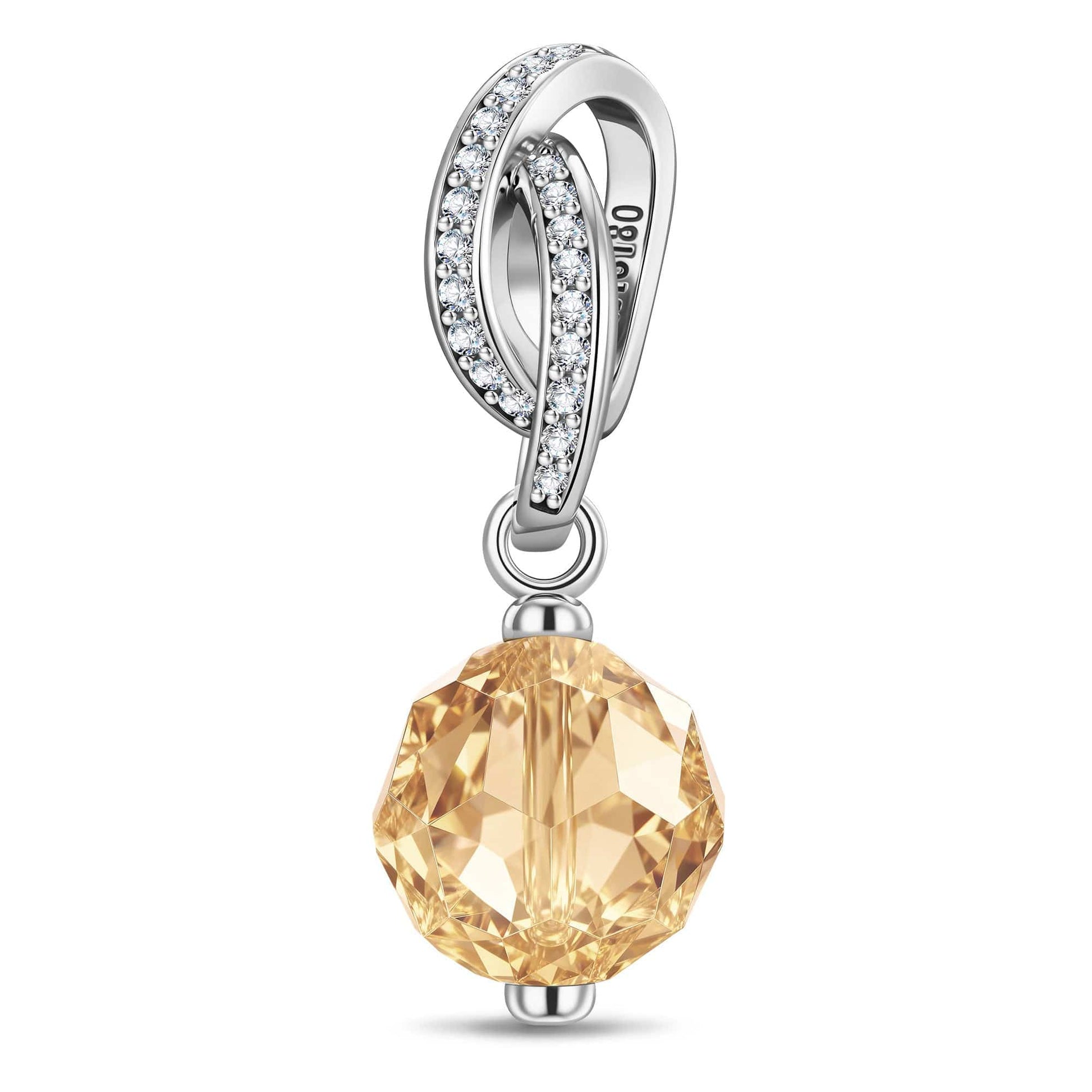 November Birthstone Tarnish-resistant Silver Dangle Charms In White Gold Plated - Handcrafted with Swarovski® Crystals