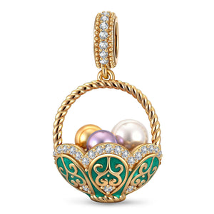 Easter Basket Tarnish-resistant Silver Dangle Charms In White Gold Plated