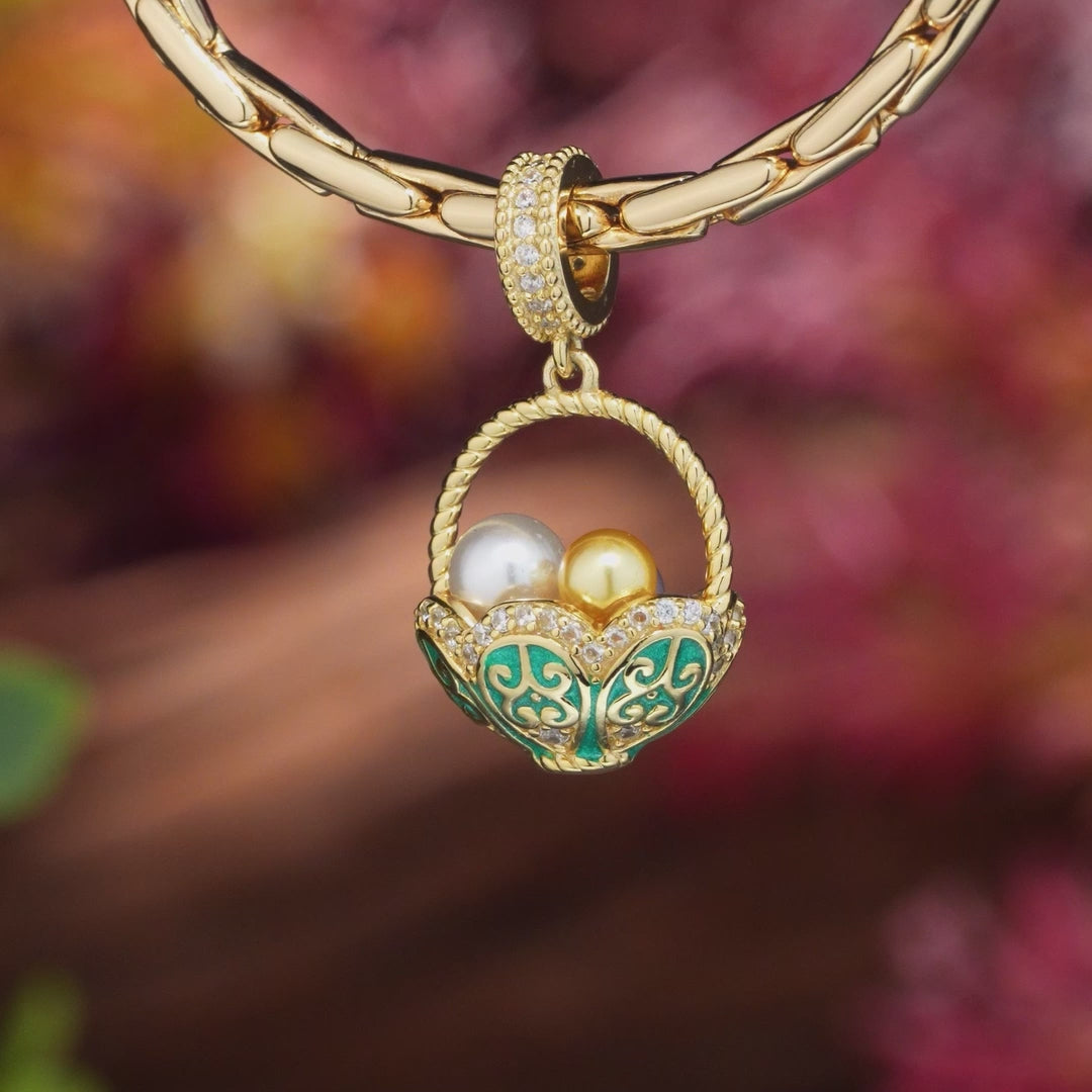 Easter Basket Tarnish-resistant Silver Dangle Charms In 14K Gold Plated