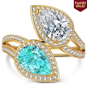 2.20 ct Pear Brilliant Cut Electric Lagoon Hue Lab-Certified Paraiba Tourmaline and Pear Brilliant Cut Cubic Zirconia - Two Stone Classic Engagement Ring 14K Yellow Gold Plated (Includes GRC Certification from Gemstone Research Center)