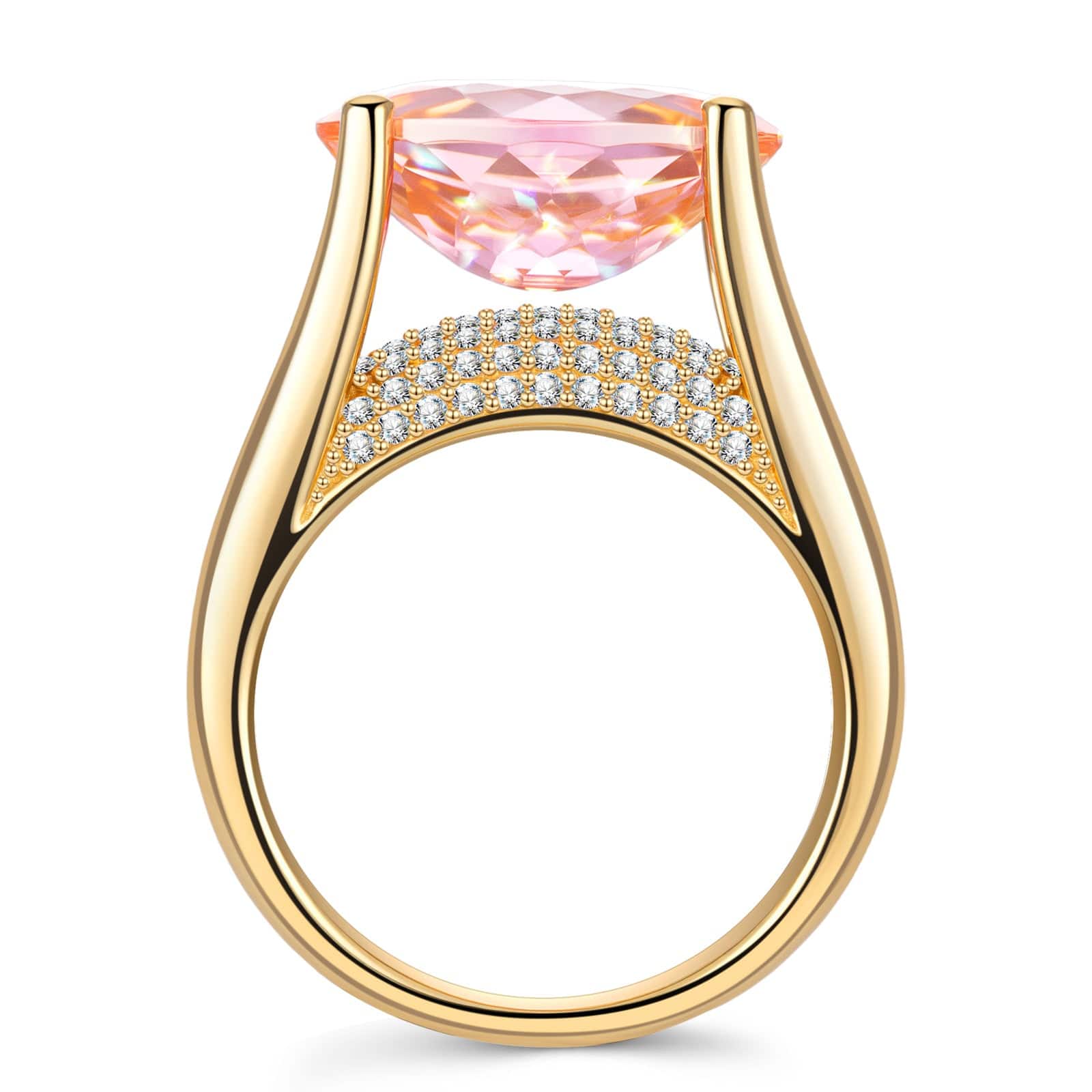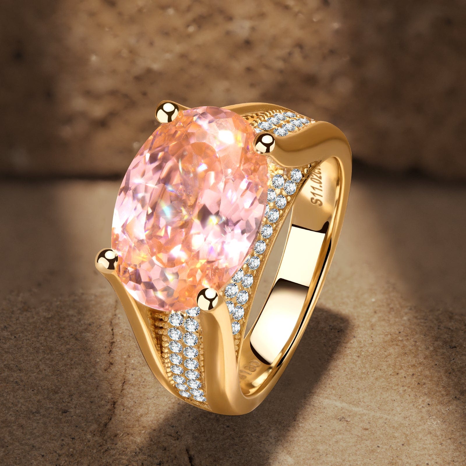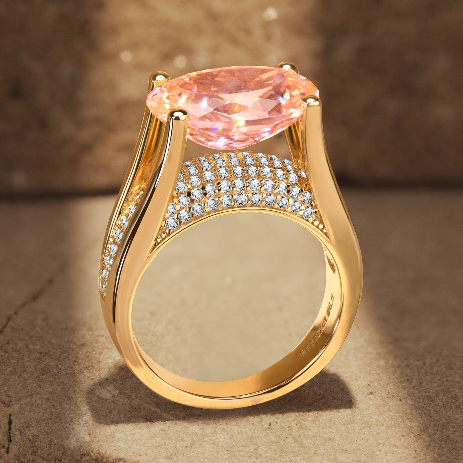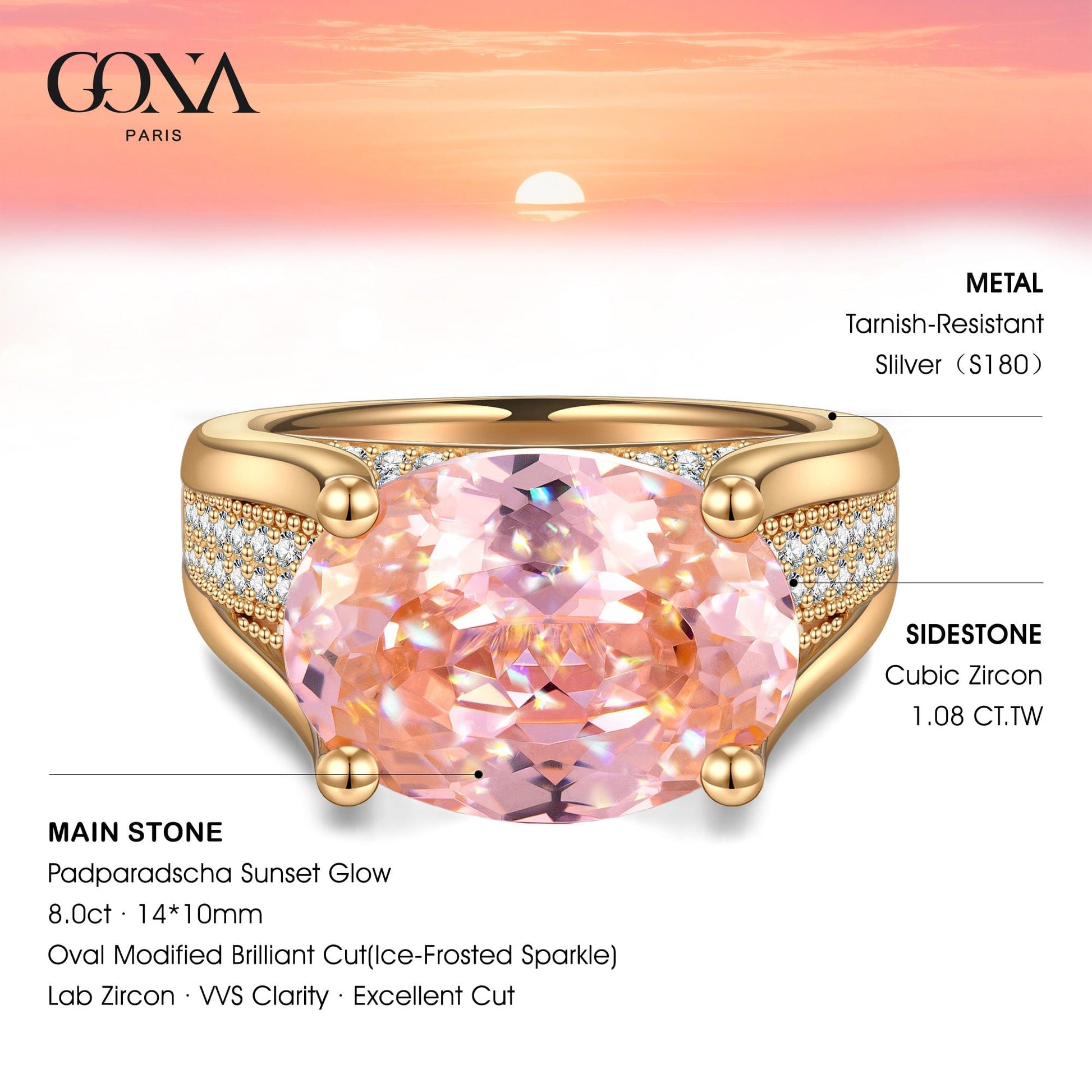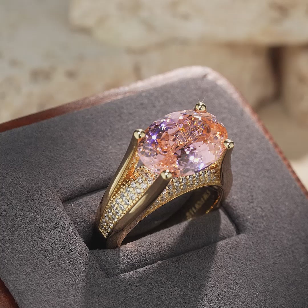 Main Stone:Padparadscha Sunset Glow Ice-Frosted Sparkle Lab Zircon