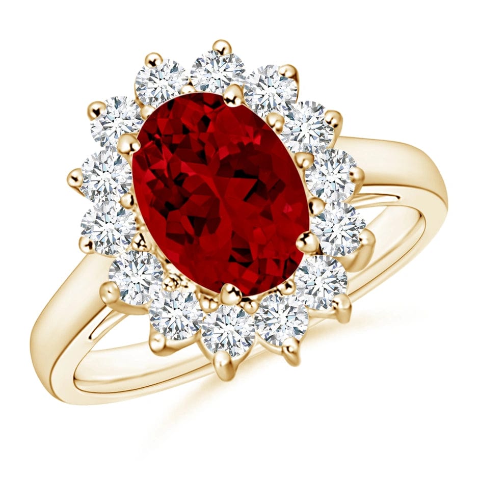 14*10mm Oval Modified Brilliant Cut Padparadscha Sunset Glow Ice-Frosted Sparkle Lab Zircon - Pave Classic Engagement Ring 14K Yellow Gold Plated