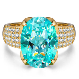 14*10mm Oval Modified Brilliant Cut Fancy Vivid Blue Ice-Frosted Sparkle Lab Zircon - Pave Classic Engagement Ring 14K Yellow Gold Plated