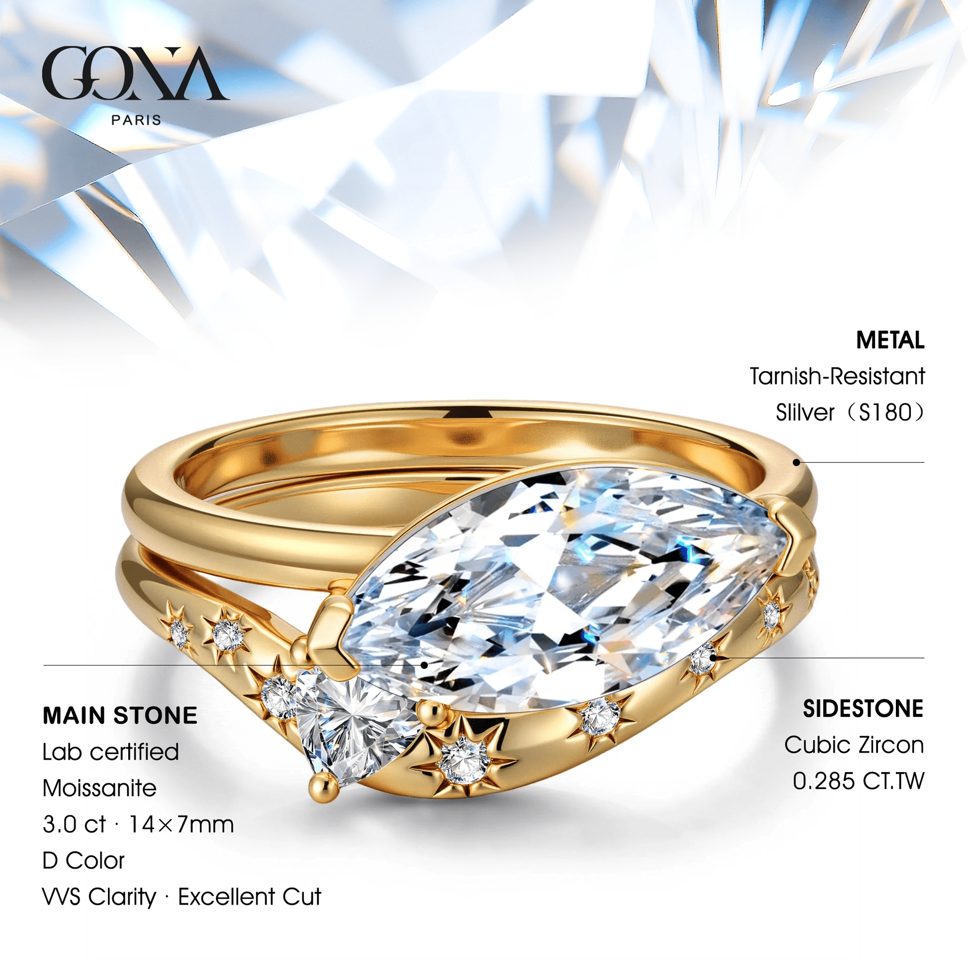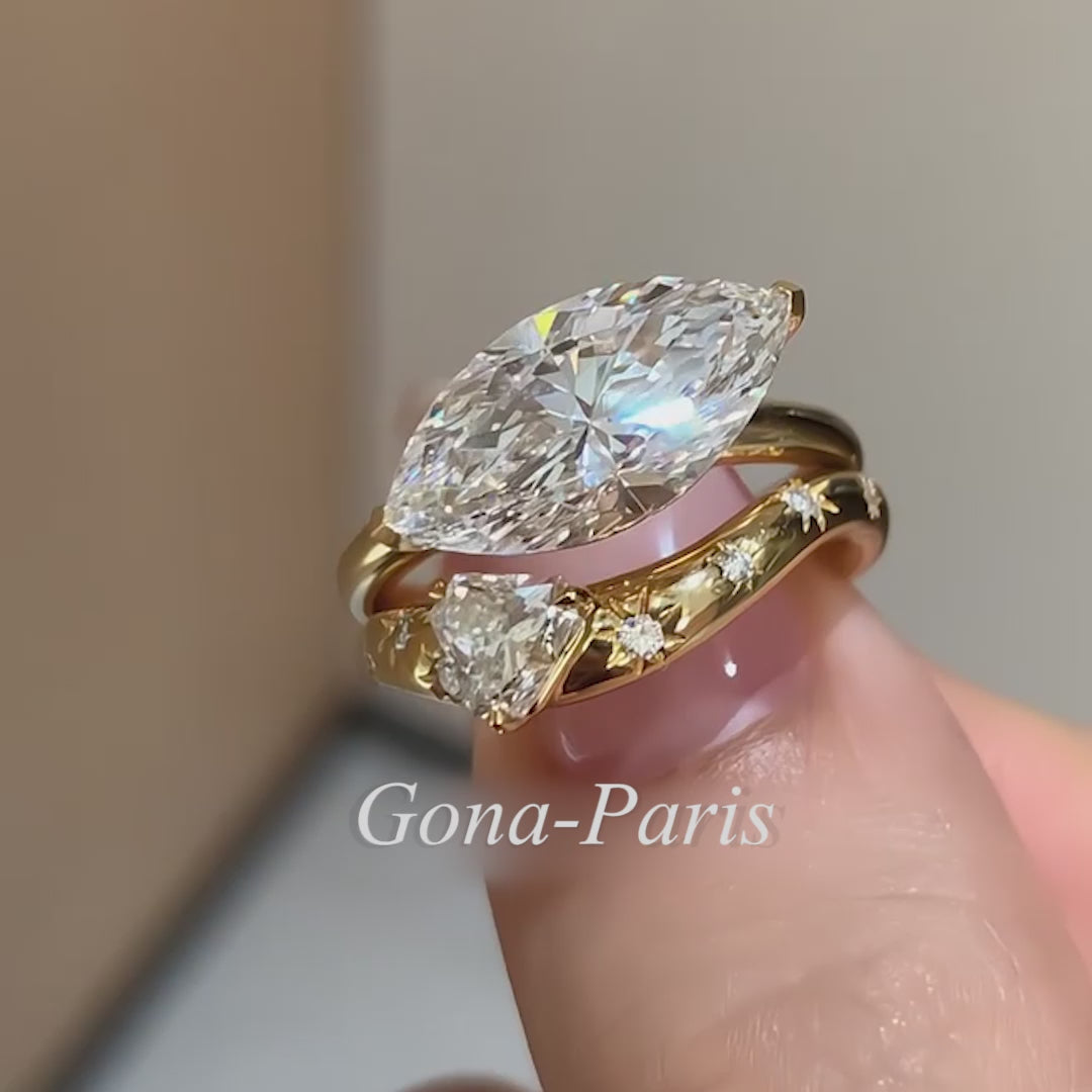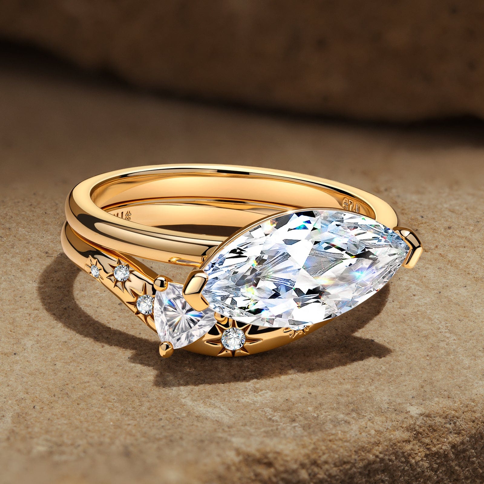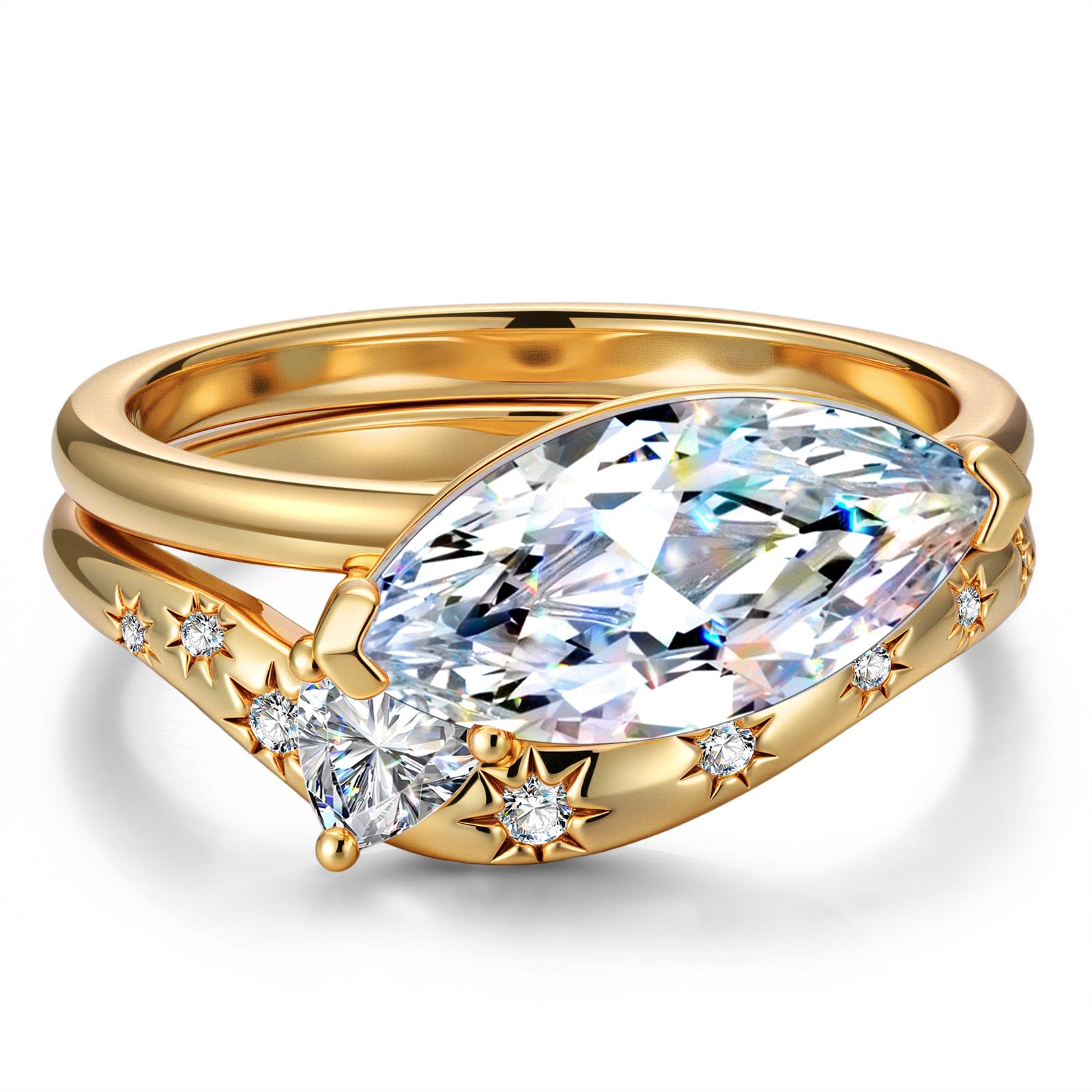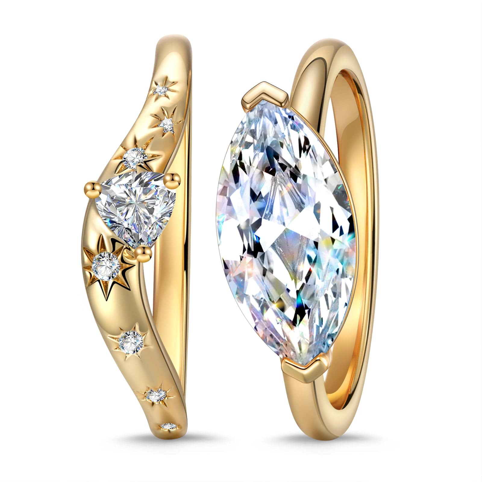 Lab-Certified Marquise Brilliant Cut Moissanite - Classic Stackable Ring Sets 14K Yellow Gold Plated (Includes GRA Certification from Gemological Research Association)