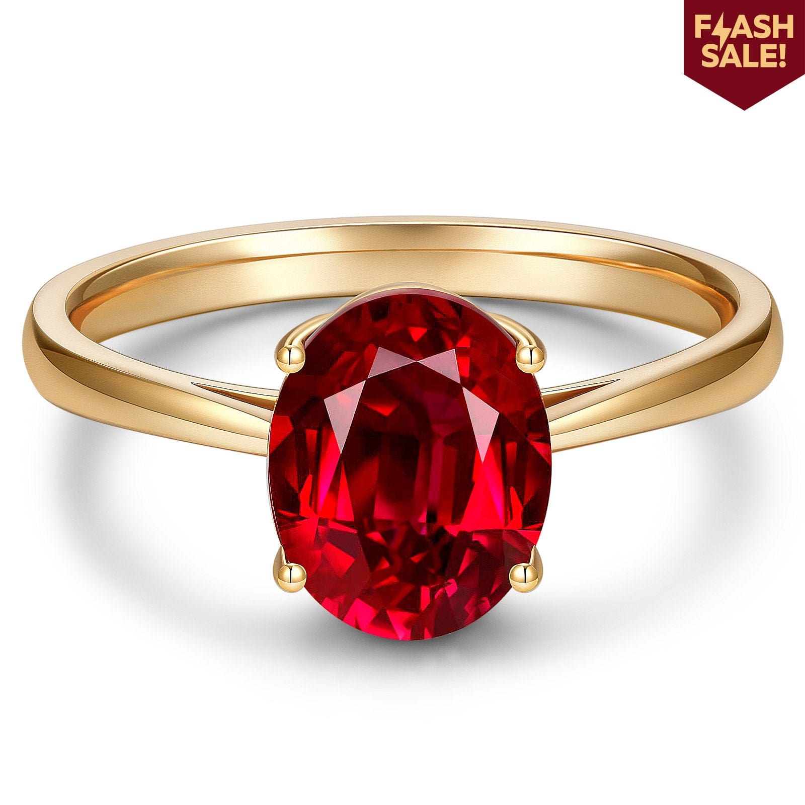 Oval Brilliant Cut Vivid Pigeon Blood Red Lab-Certified Ruby - Solitaire Classic Engagement Ring 14K Yellow Gold Plated (Includes GRC Certification from Gemstone Research Center)