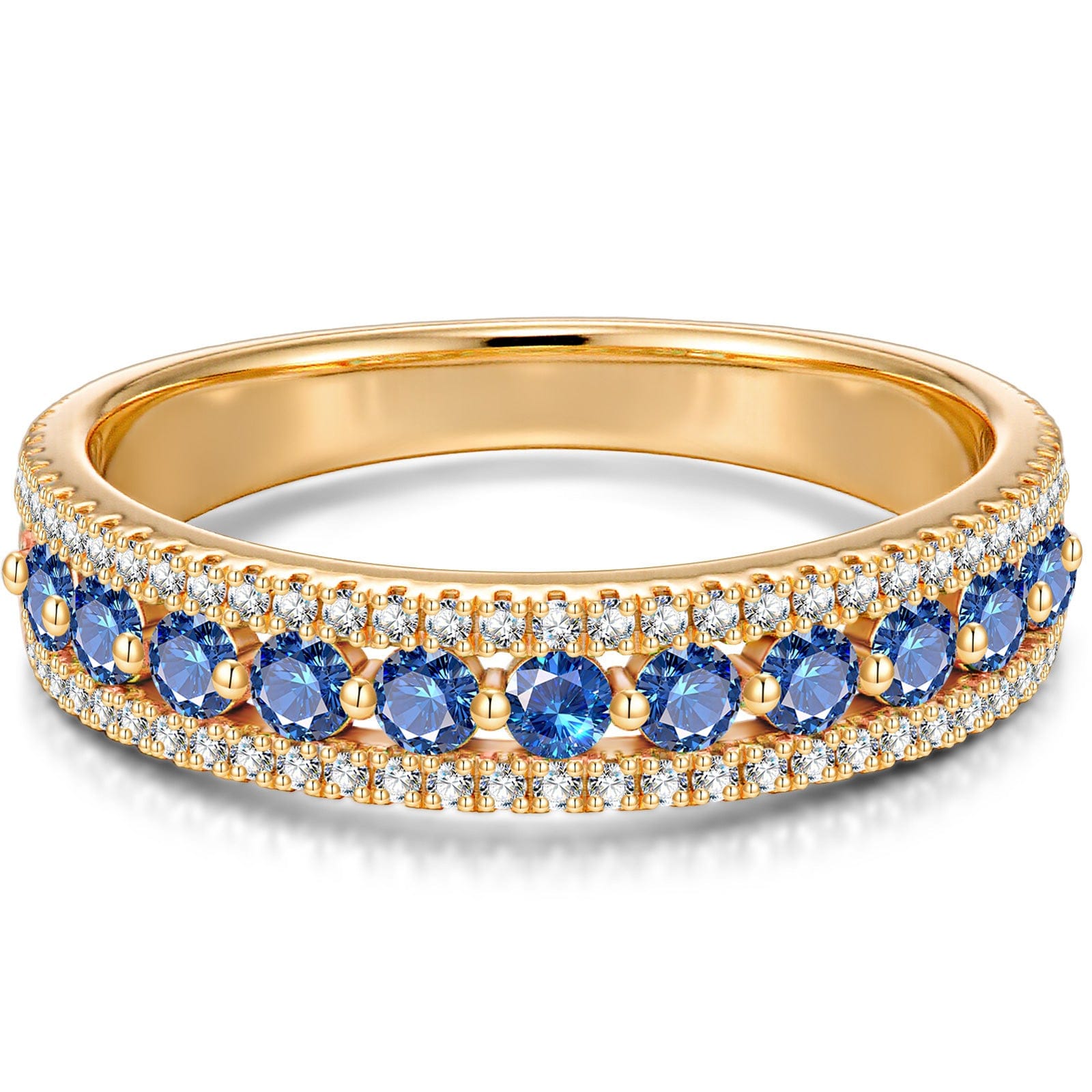 Round Brilliant Cut Royal Blue Lab-Certified Blue Sapphire - Half Eternity Ring 14K Yellow Gold Plated (Includes GRC Certification from Gemstone Research Center)