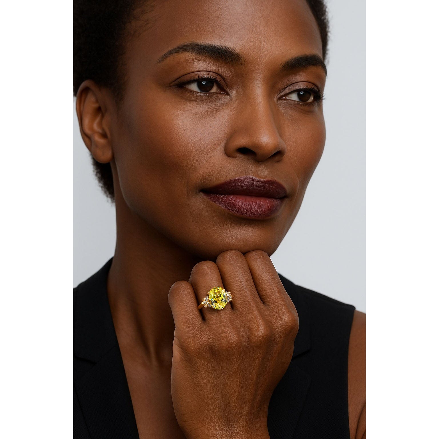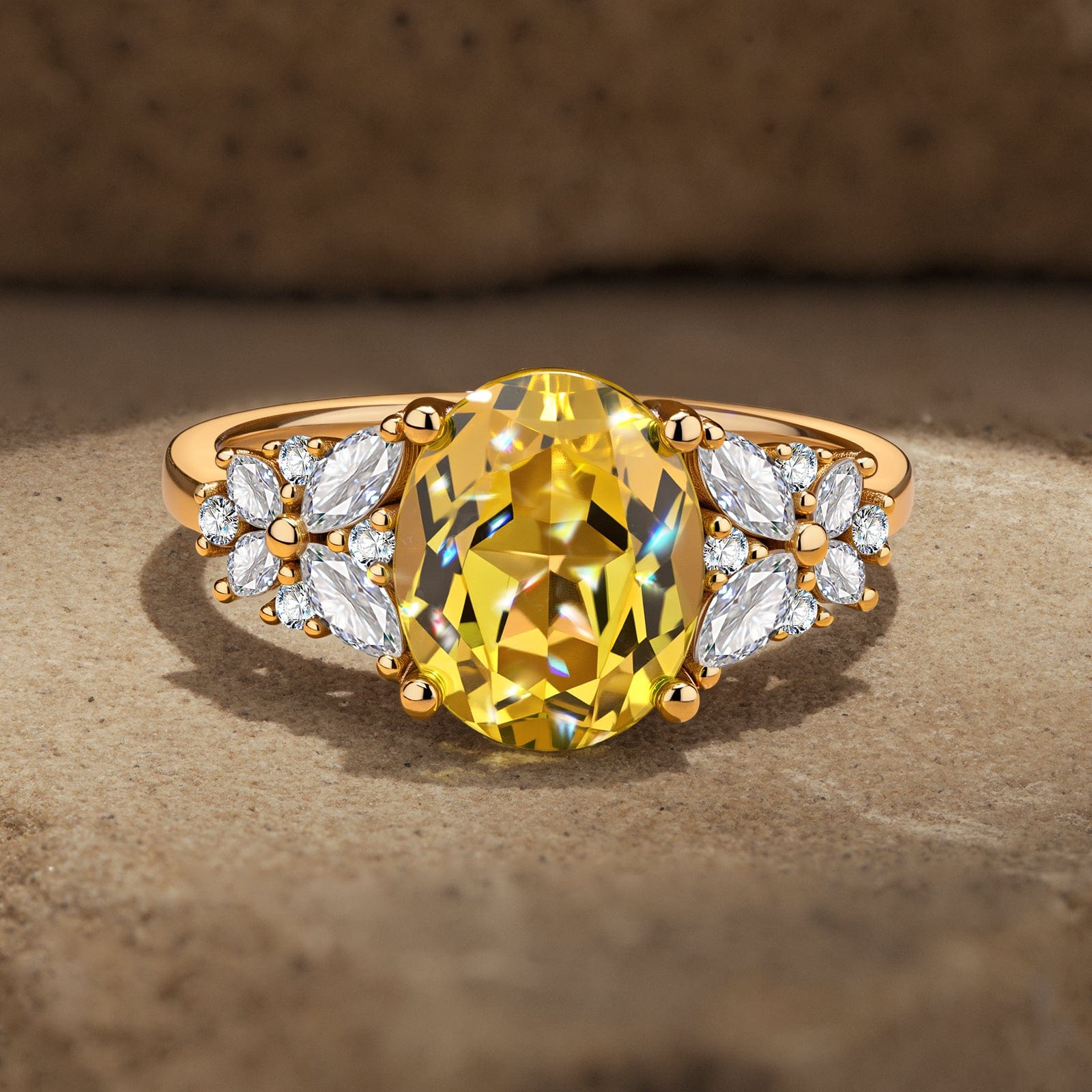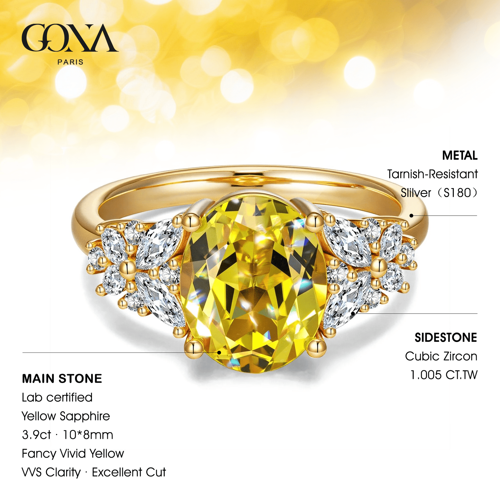 Exclusive Flash Deal Oval Brilliant Cut Fancy Vivid Yellow Lab-certified Yellow Sapphire - Pave Classic Engagement Ring 14K Yellow Gold Plated (Includes GRC Certification from Gemstone Research Center)