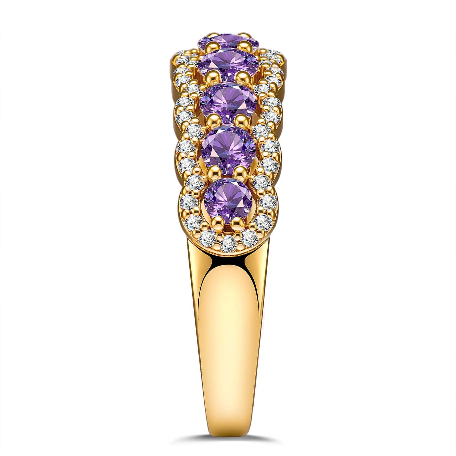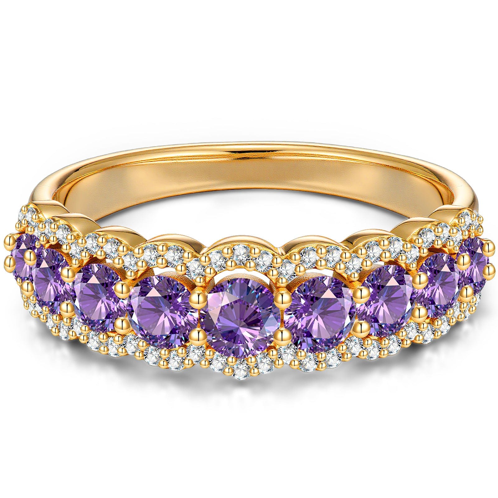 Round Brilliant Cut Fancy Vivid Violet Hue Lab-Certified Purple Sapphire - Half Eternity Ring 14K Yellow Gold Plated (Includes GRC Certification from Gemstone Research Center)